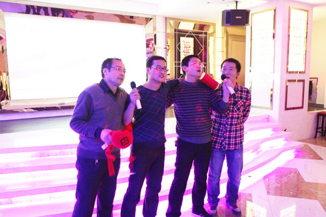 高三年级组长高秋棉、班主任李慧、杨光辉、杨玉龙演唱《恋曲1990》
