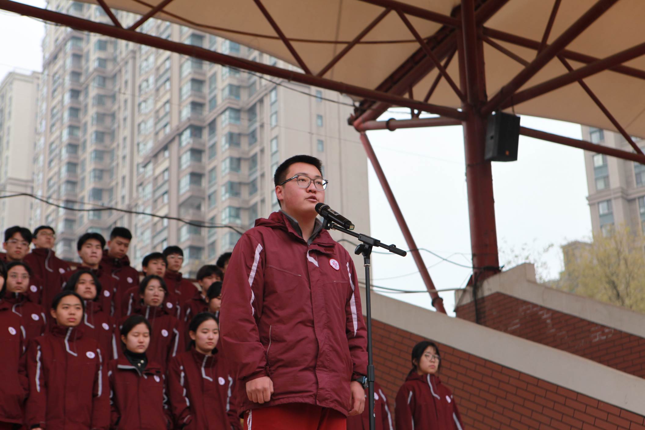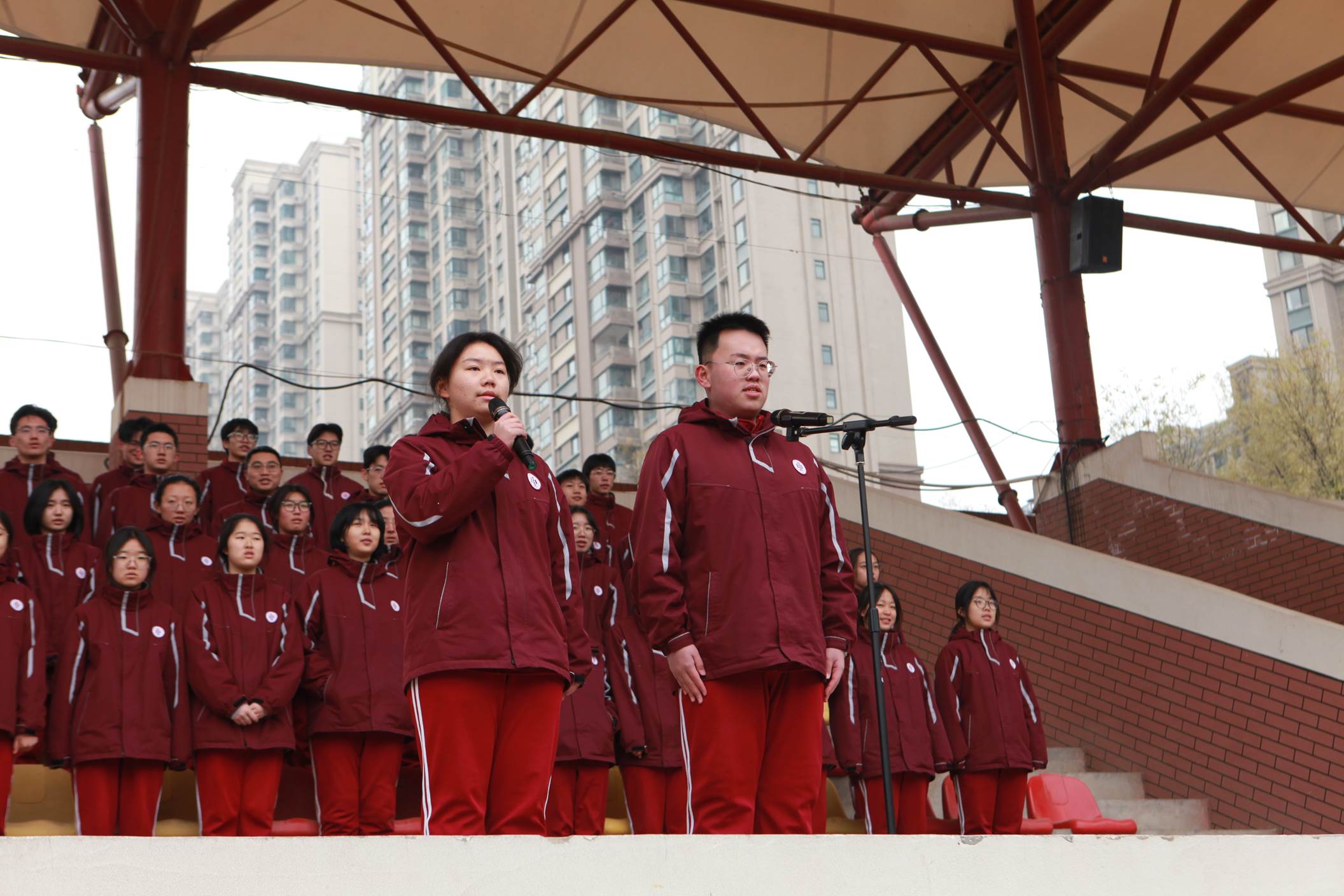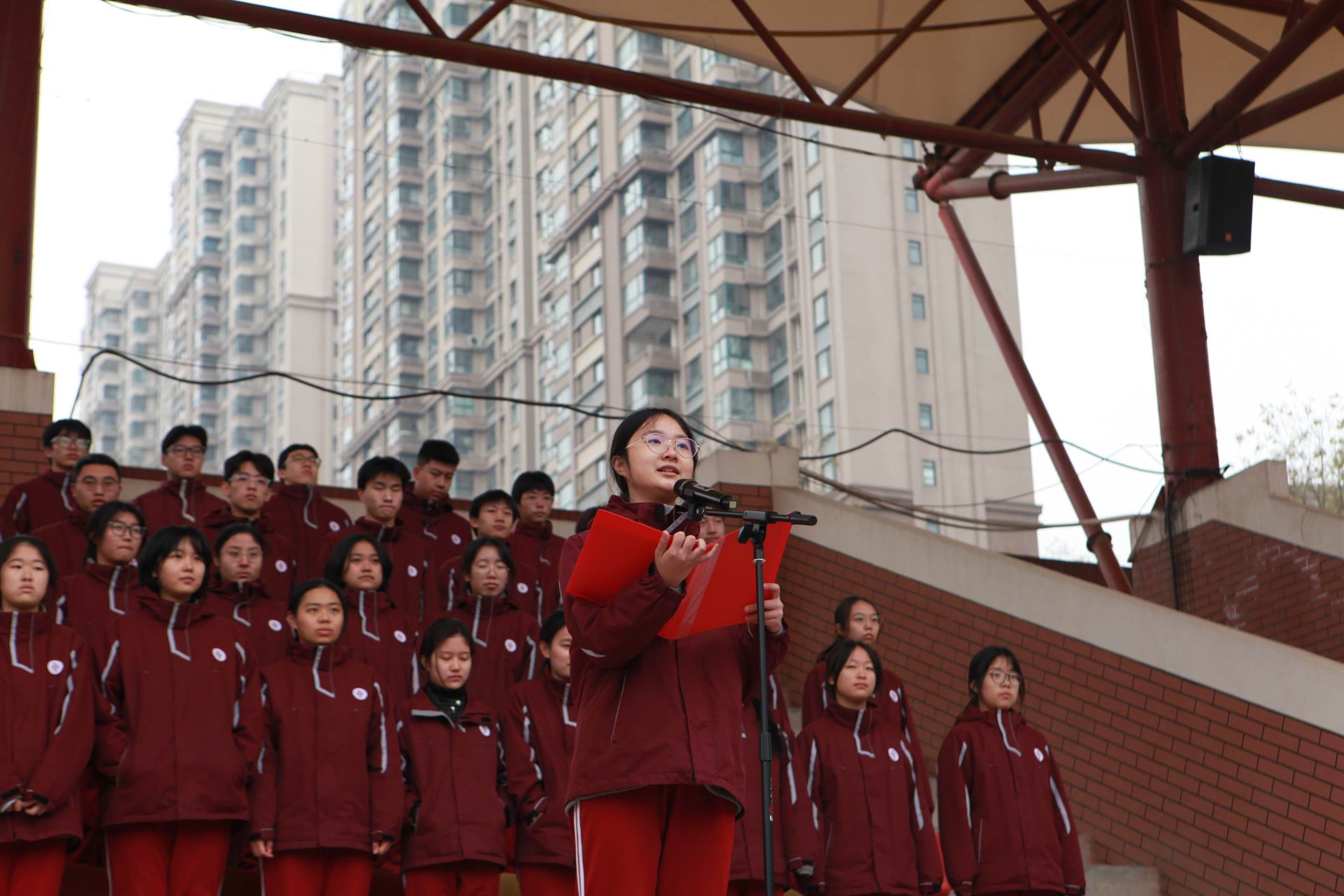 2025年12月22日上午,西安市曲江第一中学举行本学期第十八周升旗仪式,仪式由政教处副主任董锋主持。