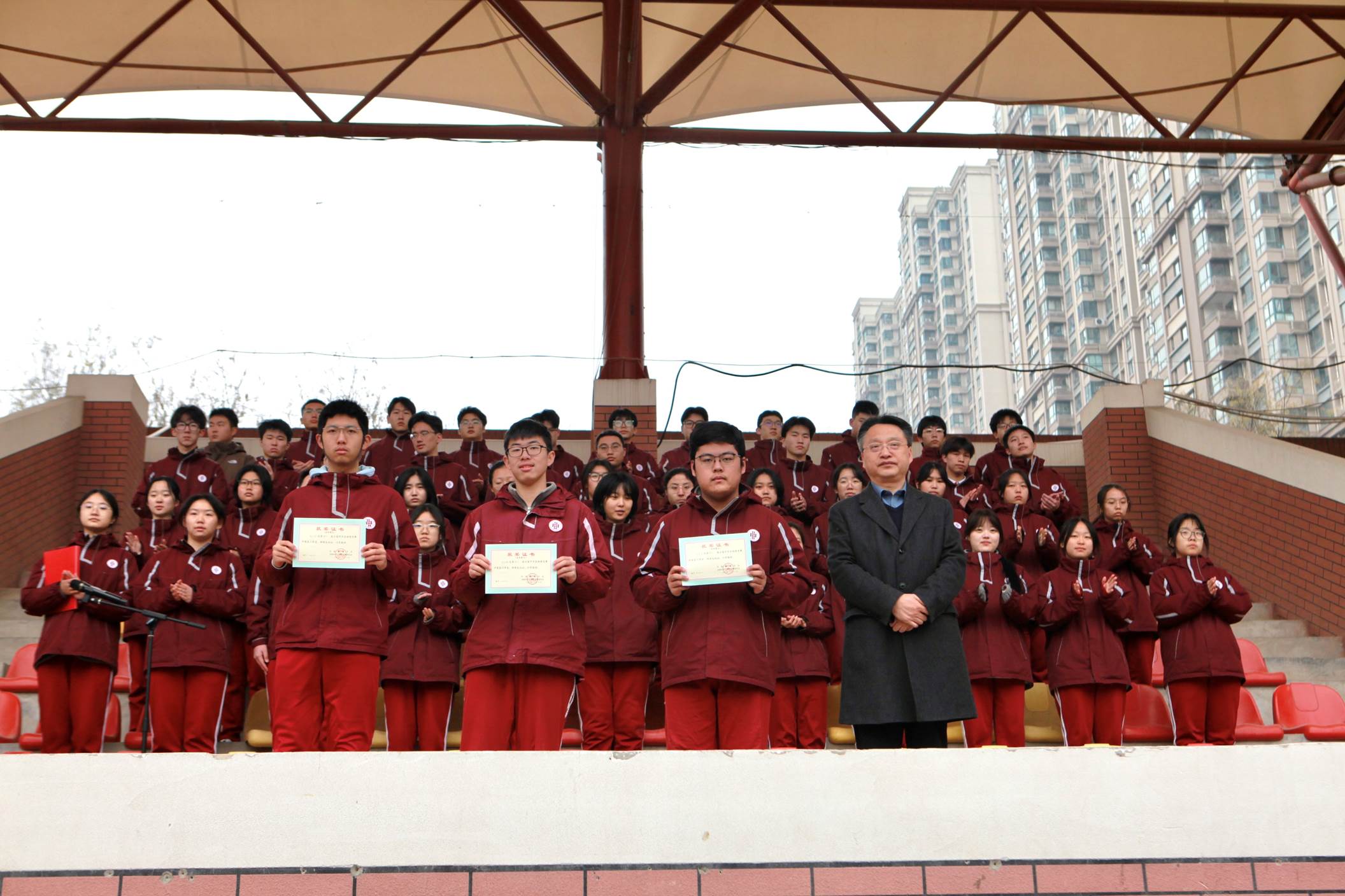 校长陈勇刚为获奖学生颁奖并合影