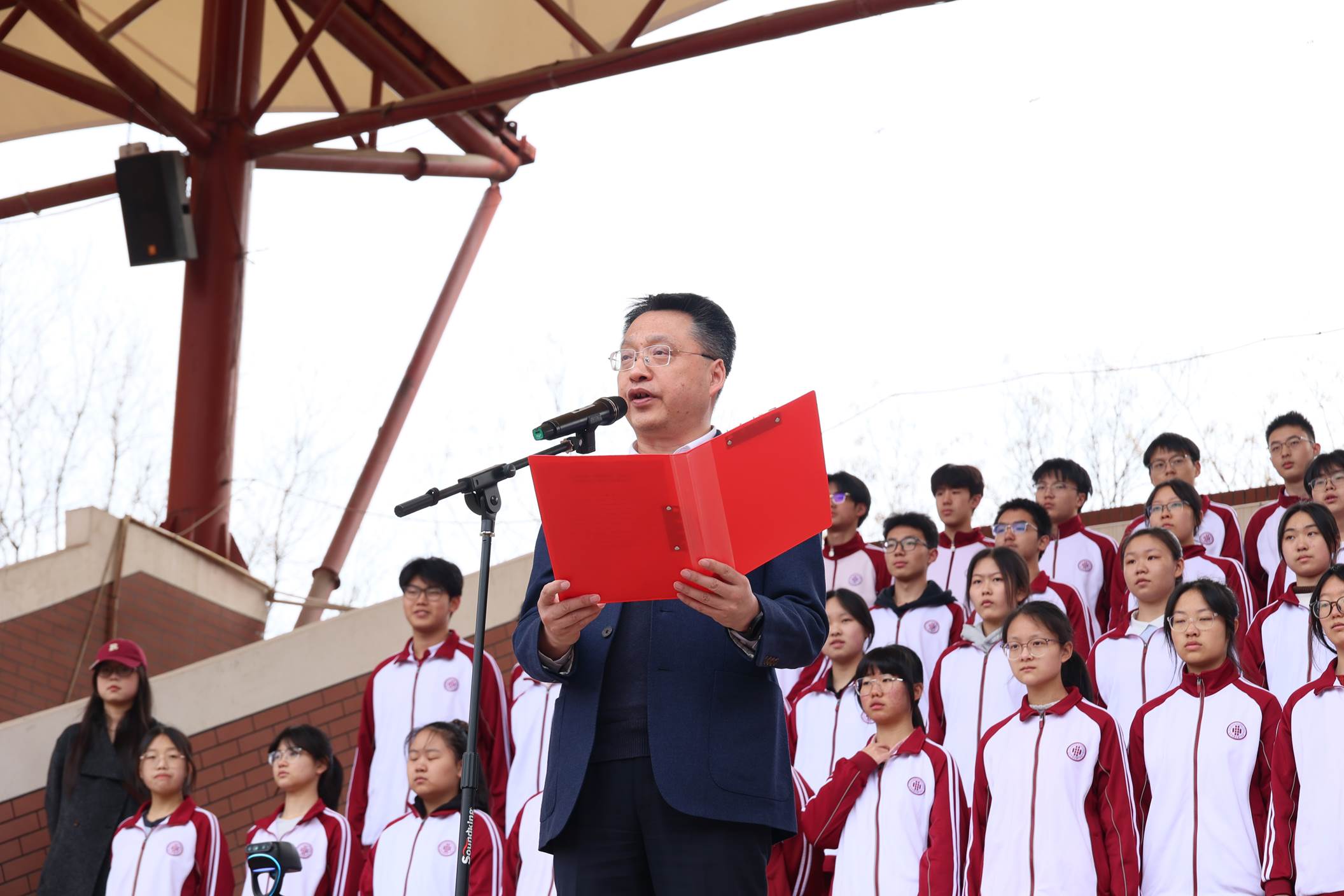 2026年3月30日上午,西安市曲江第一中学举行本学期第五周升旗仪式,仪式由政教处副主任董锋主持。