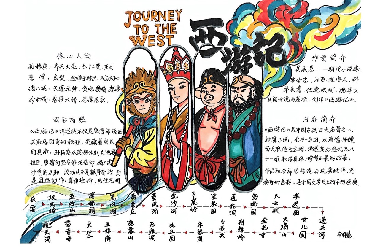 此次活动不仅加深了同学们对《西游记》的理解与热爱,更让同学们在创作过程中实现了情感共鸣与思想的成长。他们在笔墨流转间读懂了坚守与蜕变,在故事品读中感悟了勇气与担当。相信这份对经典的热忱,将如点点星火,照亮他们的阅读之路,让中华优秀传统文化在新时代少年的心中薪火相传,历久弥新。