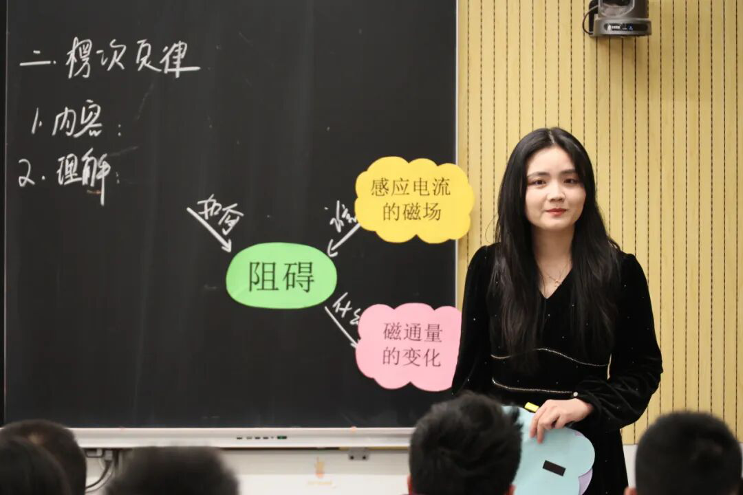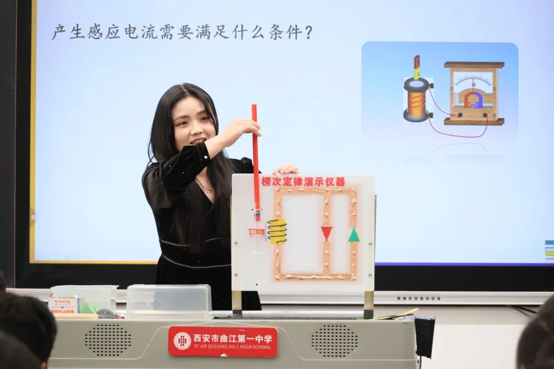 西安市曲江第一中学教师宋敏以趣味实验创设情境,引导学生深入探究楞次定律。采用任务驱动与实验探究法,组织学生开展“螺线管与磁铁”实验,通过合作操作、数据分析自主归纳感应电流方向的变化规律,构建“四步法”应用模型。课堂从力与能量转化等多角度剖析“阻碍”的物理本质,融合AI视频解析定律的深层内涵,同时引入电磁弹射等科技应用案例,贯通物理观念与科学思维,使抽象的电磁感应规律变得直观可感,有效提升了学生的科学探究能力与创新意识。