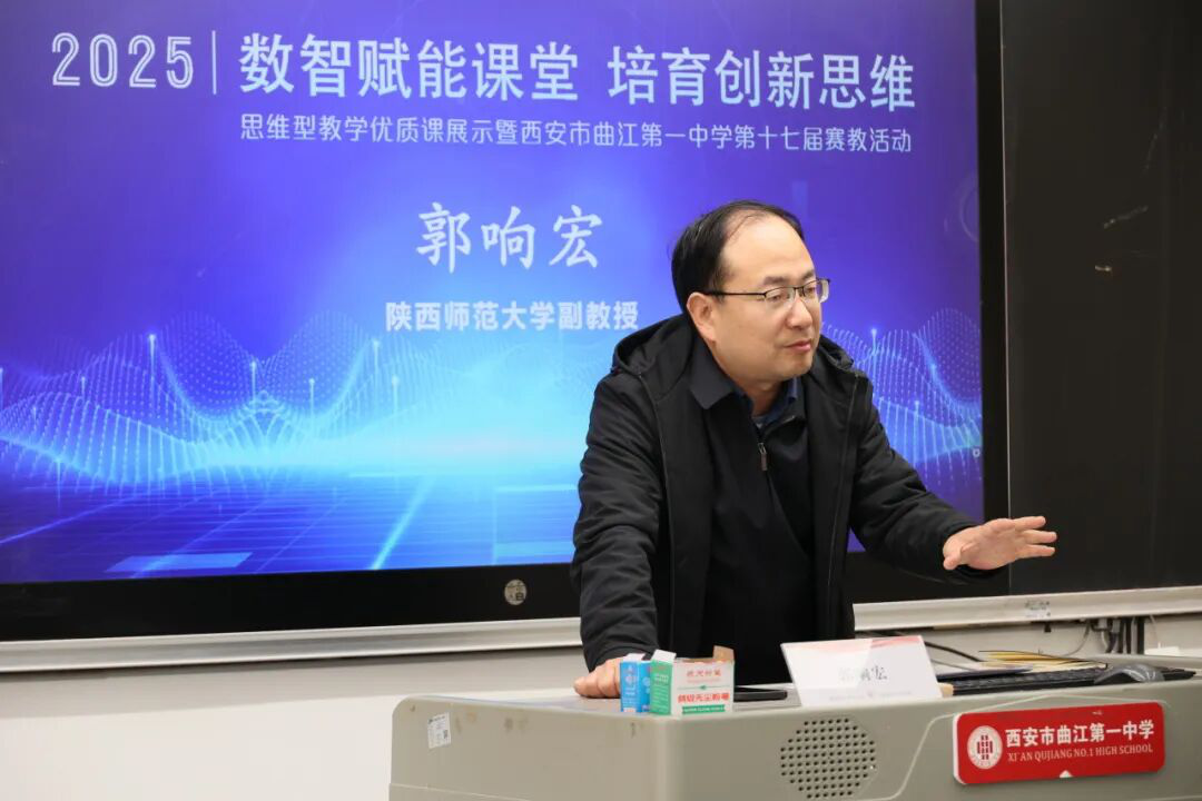 郭响宏副教授对三节展示课进行了逐一点评。郭教授认为,本次参赛课例亮点纷呈,体现在三个方面:其一,全面贯彻“课标、教材、学情、评价”四个意识,坚持素养导向,无论是剖析三国鼎立的历史进步性,还是引导学生撰写展览结束语,均体现了教师对新课标与评价体系的精准把控;其二,扎实落实“思维型教学”理念,通过问题驱动和任务引领,帮助学生主动建构知识、生成核心概念,既契合中高考探究性思维命题方向,又有效提升了学生的历史学科思维能力;其三,精准把握“教师主导、学生主体”的双主关系,通过深度互动与历史情境创设,有效激发学生的共情力与创造性思考,体现了数智时代背景下智慧课堂建设的新方向。