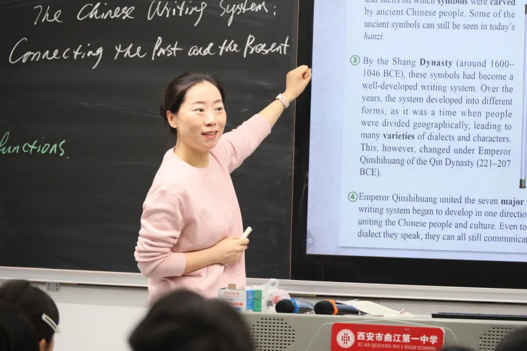 西安市曲江第一中学教师王晓璐以“汉字书写系统连接古今”为核心,围绕“汉字为何能连接古今”这一主线,以“情境贯穿、文化浸润、实践导向、技术赋能”为理念展开教学。课堂伊始,王老师以真实人物Evan的求助创设情境,引发学生探究兴趣。在读中环节,她引导学生分层研读文本,系统梳理汉字发展脉络,并提炼出汉字在历史传承中连接时空、文化、思想与世界的“四大核心价值”。随后,课堂巧妙融入《兰亭序》书法鉴赏,并组织学生以小组合作形式,提笔挥毫,将承载着文化内涵与美好祝福的书法作品赠予Evan,与课堂开篇形成完美闭环。整堂课情境贯穿始终,融鉴赏与实践于一体,学生在理解、表达与创造中,完成了一次对汉字之美的深度探索,真切体会到何为“语言习得、文化自信与情感表达”的统一。