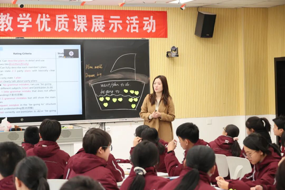 西安市曲江第一中学教师文诗越精心打造了一节趣味十足的语法实践课。课堂以“制定计划”为主线,聚焦表达将来时的“be going to”结构,借助“新年派对筹备”这一鲜活情境自然导入,瞬间拉近了语法知识与学生生活的距离。教学过程中,文老师通过游戏闯关、AI互动等形式,引导学生层层递进地掌握目标句型的各种句式,并在情境中体会其语用功能。同时,她设计的小组合作任务,让学生组队为派对贡献自己的力量,并引导学生对小组活动进行了及时的评价。这节课,不仅帮助学生扎实巩固语法知识,更让学生在真实的语言实践中提升运用能力,真正做到了学用结合。