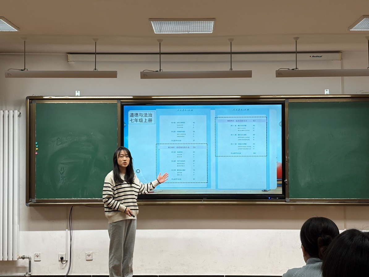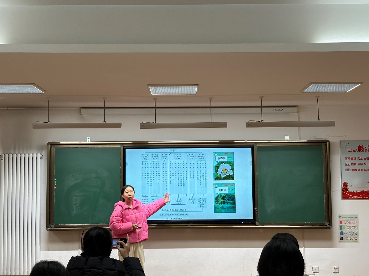 生物教研组梁园园老师通过整合教材目录,就有关“生命教育”主题内容分享了生物学科的教育价值。梁老师从科学视角出发,探讨了如何通过揭示生命的起源、结构与奥秘,帮助学生理解生命的物质基础与自然规律,引导学生认识到生命的可贵,树立将生命健康与安全放在第一位的观念,培养热爱生命的科学精神与生态伦理意识。