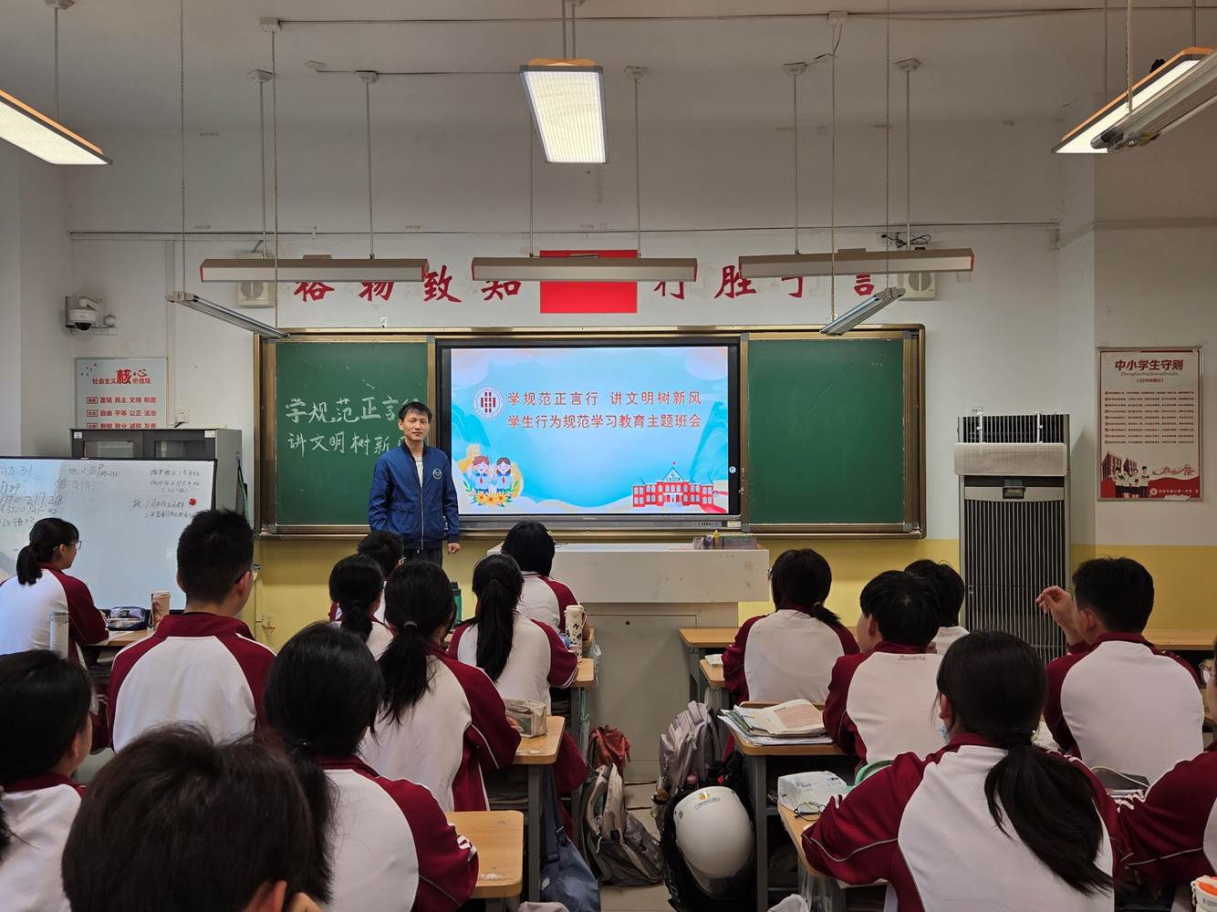 《学规范正言行、讲文明树新风》学生行为规范教育主题班会通过多种形式引导学生深入学习学校各项规章制度,旨在帮助学生树立正确的行为规范意识,培养良好的文明习惯。班会内容涵盖学生行为准则、学校规章制度、学生仪容仪表规范、学生文明习惯养成。