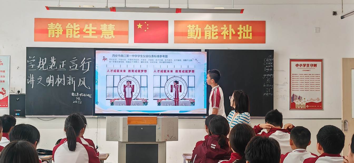 近日,为进一步加强学生思想道德建设,培育和践行社会主义核心价值观,规范学生行为习惯、营造文明和谐的校园氛围,西安市曲江第一中学组织全校各班开展学生行为规范教育主题班会活动。