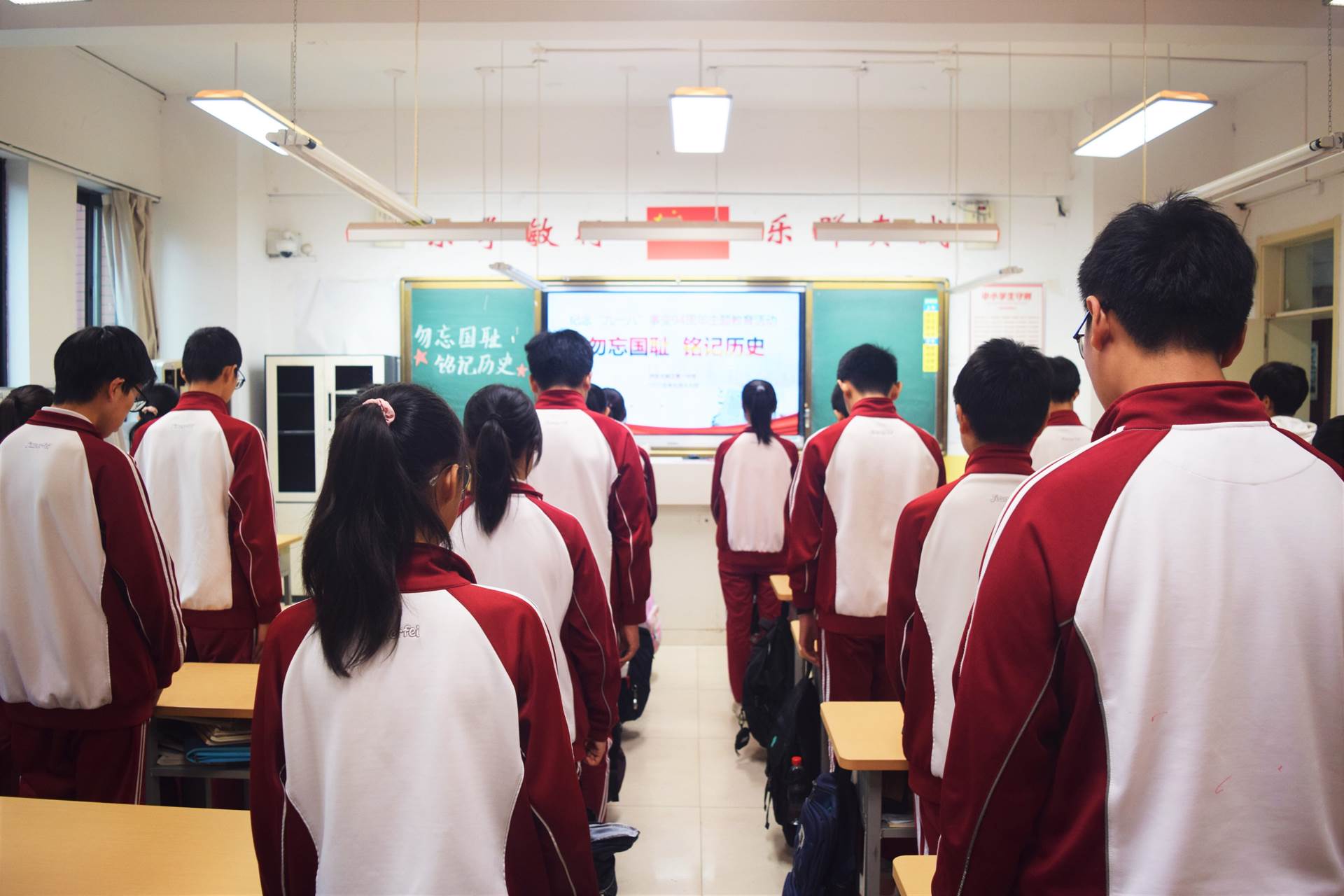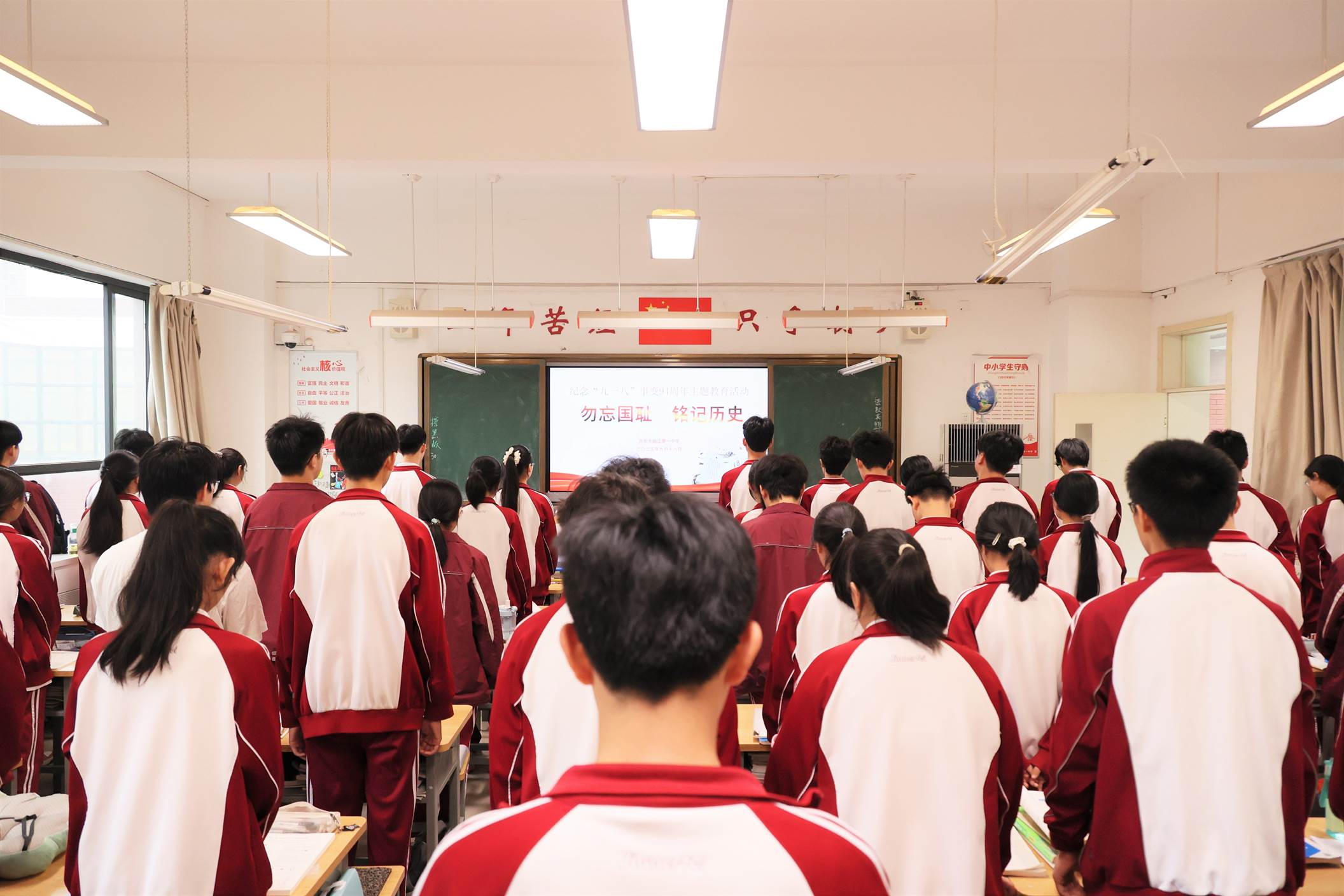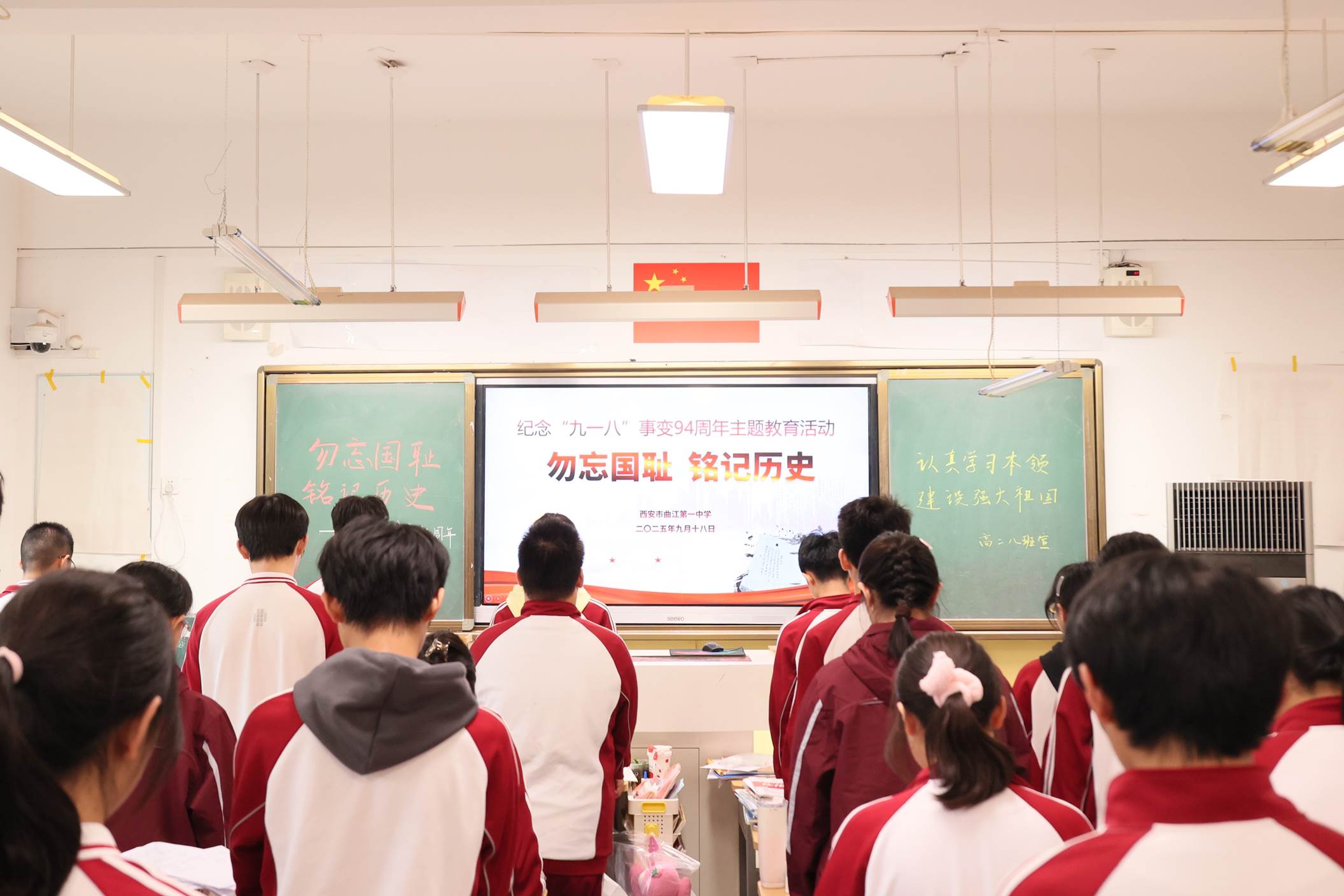 今年是“九一八”事变爆发94周年,9月18日上午,西安市曲江第一中学组织全校师生开展了“勿忘国耻 铭记历史”——纪念“九一八”事变爆发94周年主题教育活动。上午10时,防空警报声响起全校师生整齐肃立低头默哀。