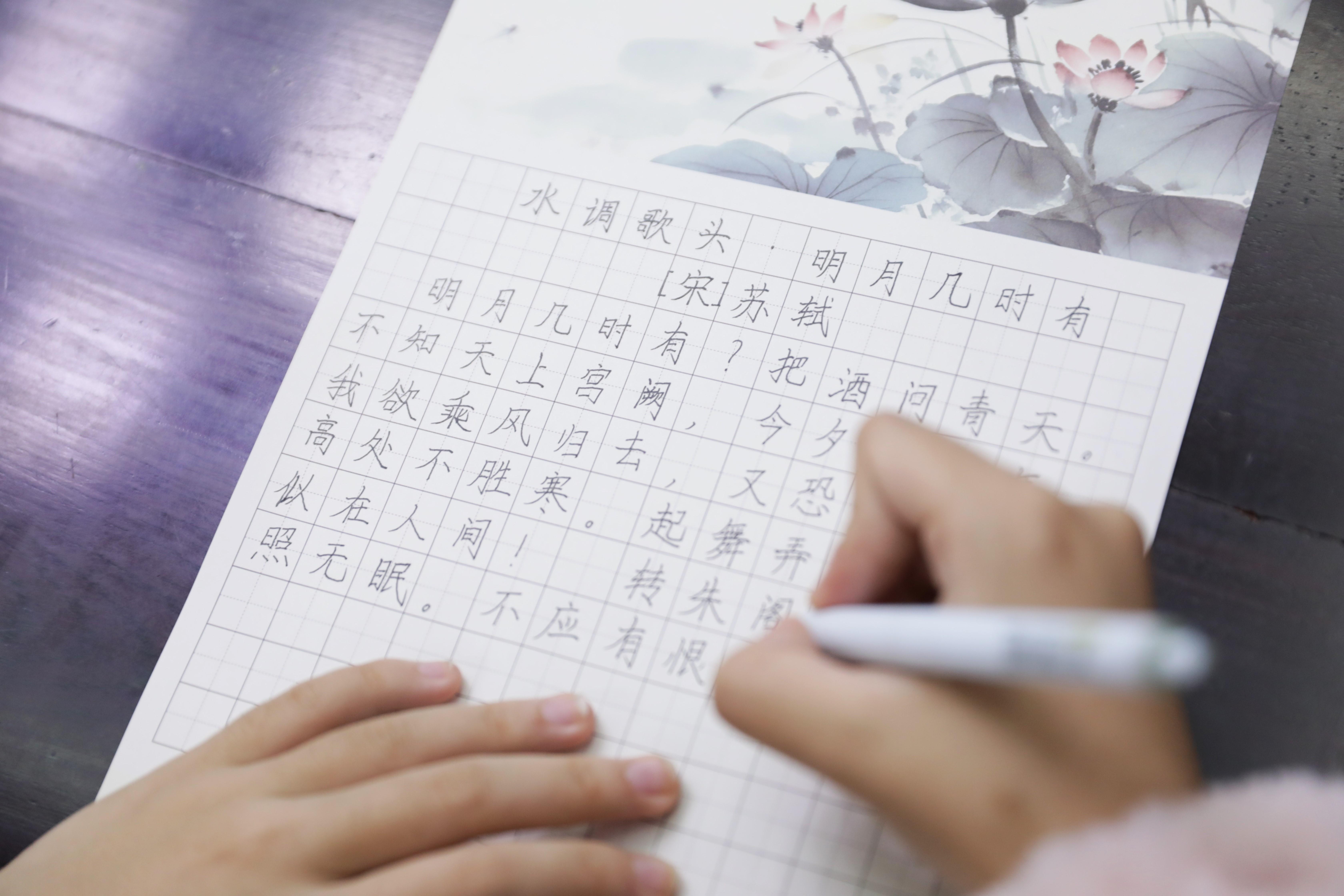 决赛现场,同学们端坐桌前,凝神静气,以经典词作《水调歌头》为书写内容,专注完成书写。笔尖在纸上流畅游走,横平竖直彰显基本功,撇捺舒展尽显灵动美。同学们以规范工整的笔画和挺拔有致的字形,充分展现了扎实的硬笔书写功底与对书法艺术的深刻理解,现场洋溢着浓厚的笔墨书香与文化氛围。比赛结束后,评委老师秉持公平、公正、公开的原则,从字体的美观度,结构笔画的规范度,用笔的力度及整体效果等方面对参赛作品进行了评比打分,最终评选出一等奖26名,二等奖42名。