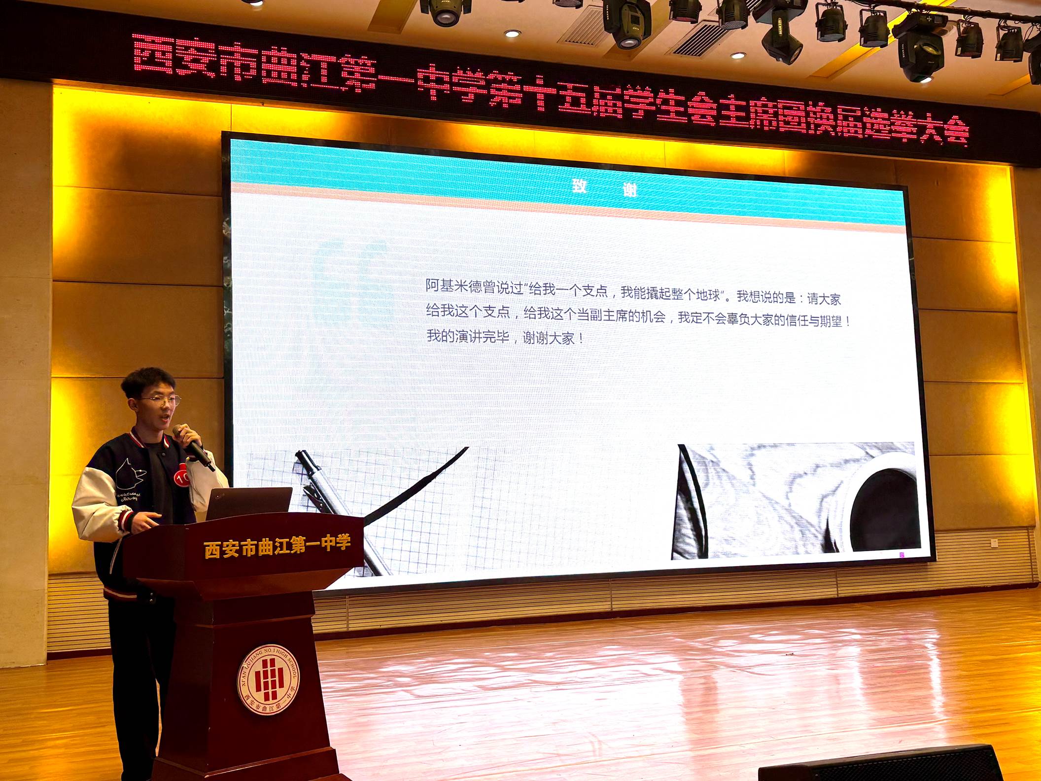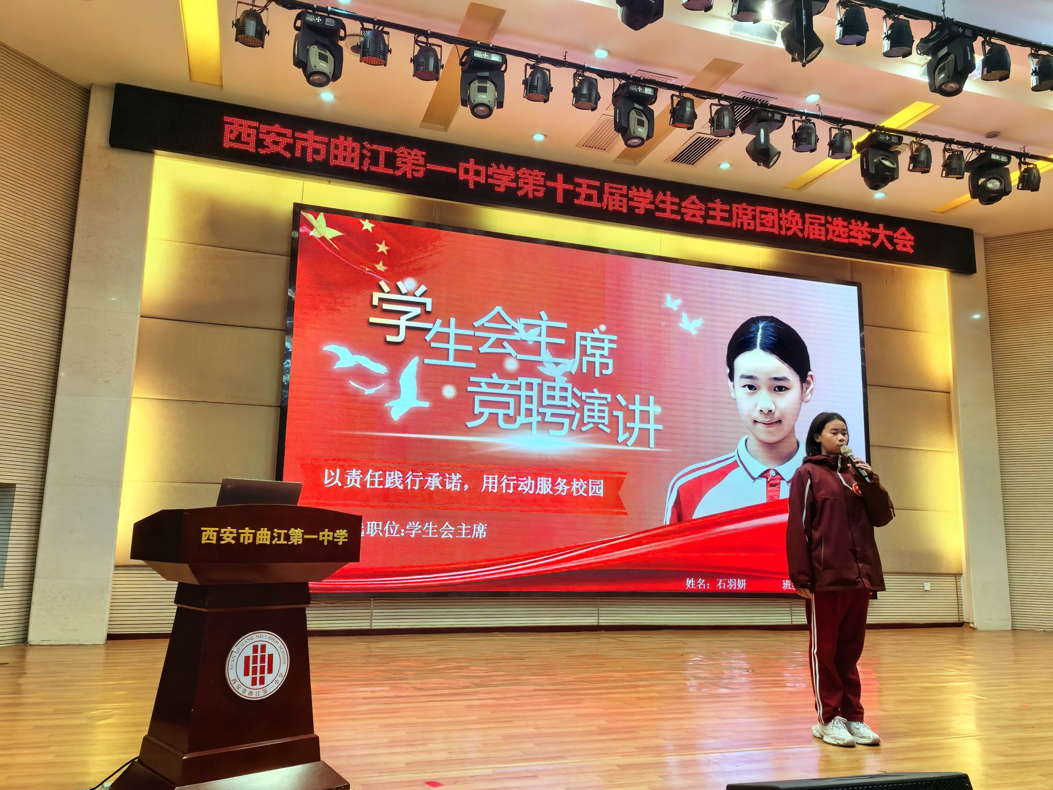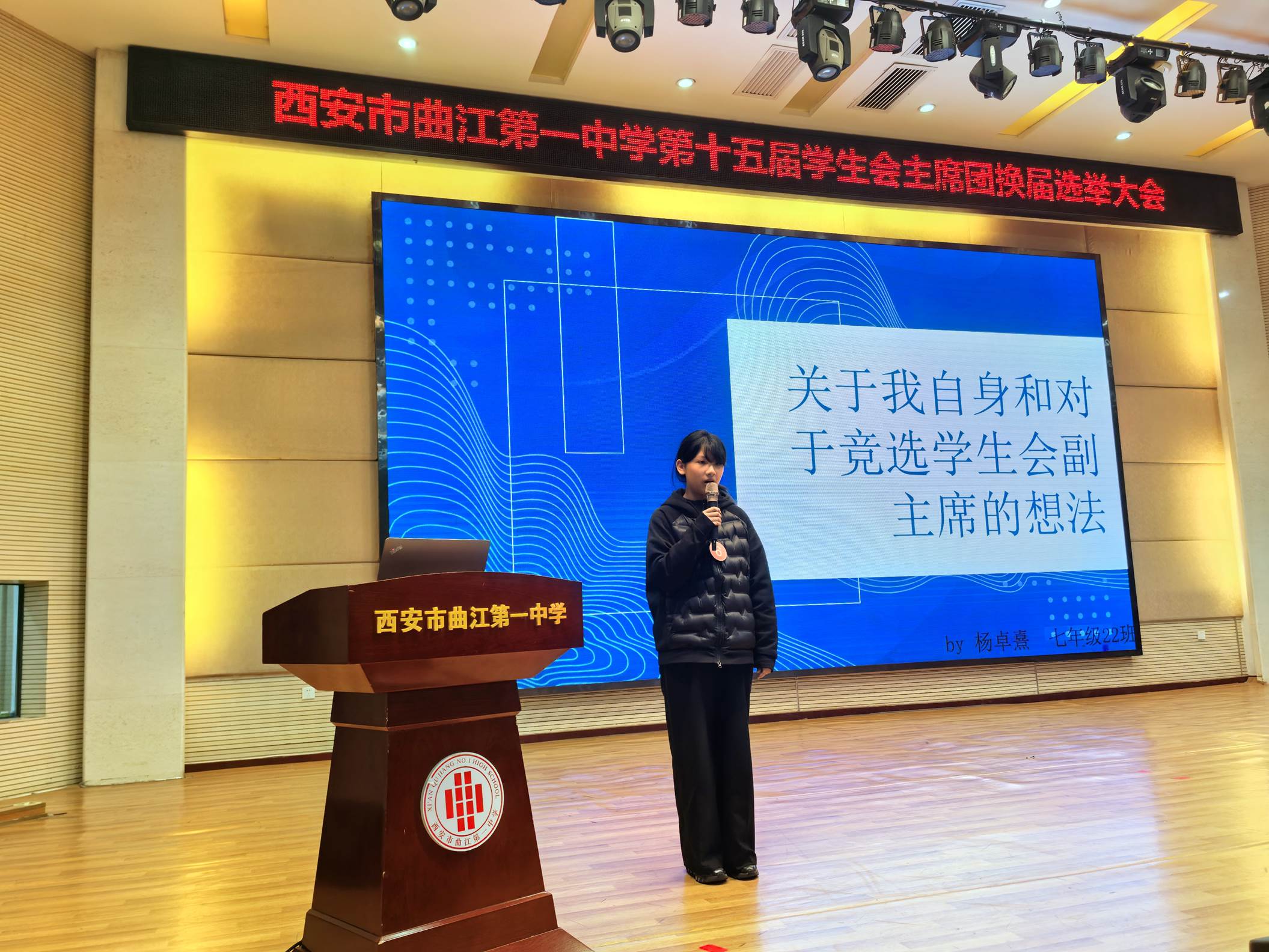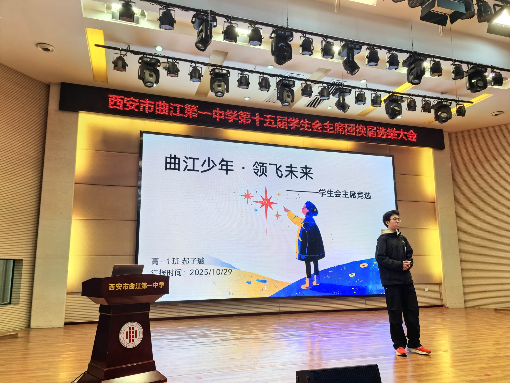 为更好地发挥学生自我教育、自我管理、自我服务的职能,2025年10月29日下午,西安市曲江第一中学第十五届学生会主席团换届选举大会在润德厅召开。曲江一中团委副书记高文昌,各年级教师代表及各班学生代表参加大会并参与投票。本次换届选举大会由团委老师陈妍主持。