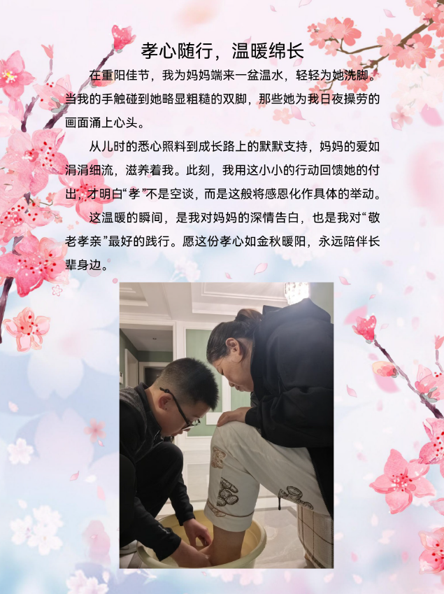 秋风送爽,丹桂飘香,又是一年重阳至。为传承中华优秀传统文化,培育学生敬老感恩的美好品德,我校于重阳节来临之际,精心策划并开展了“情暖金秋,爱在重阳”主题系列活动,引导同学们在实践中感悟亲情,在奉献中传递温暖。