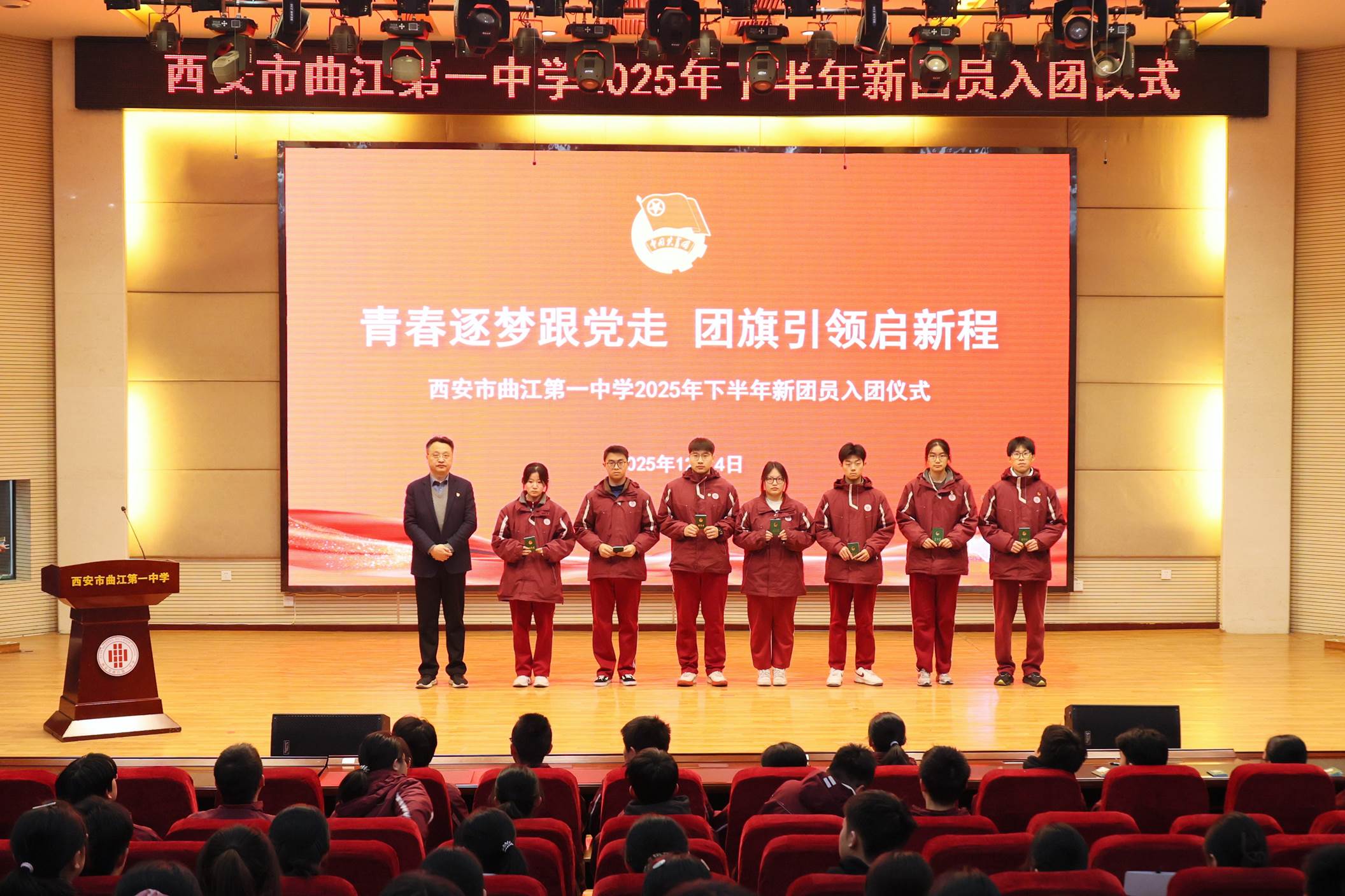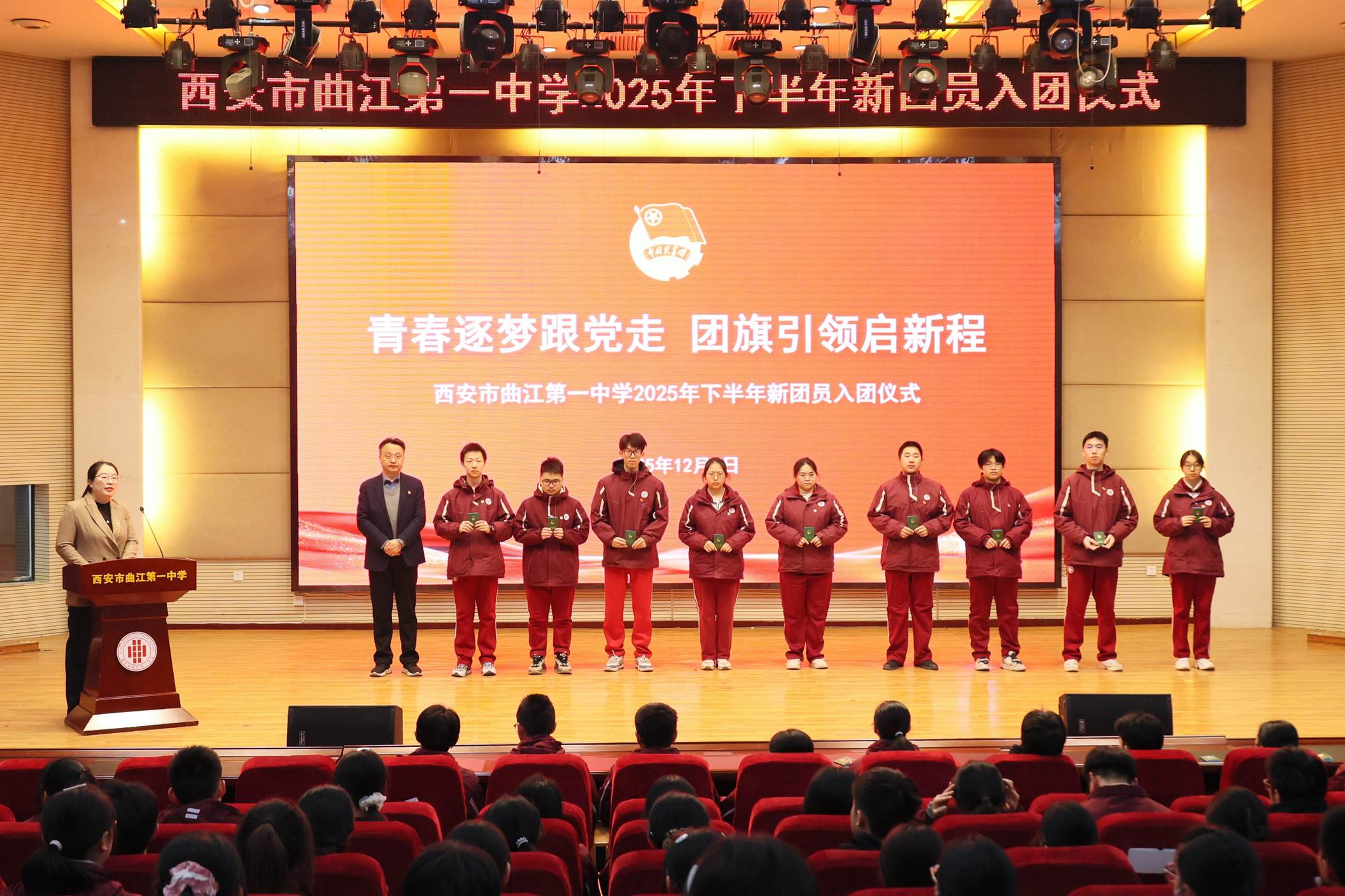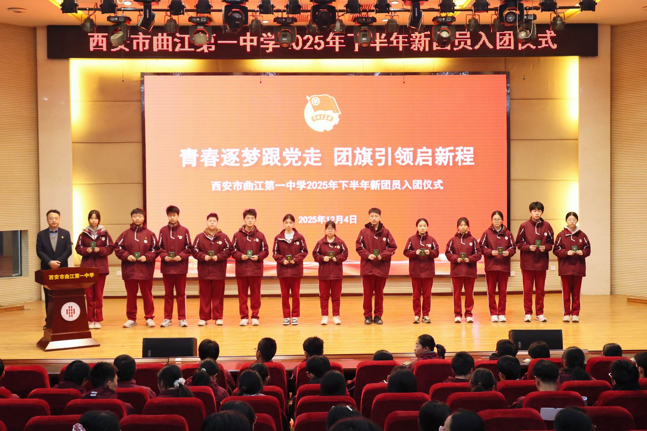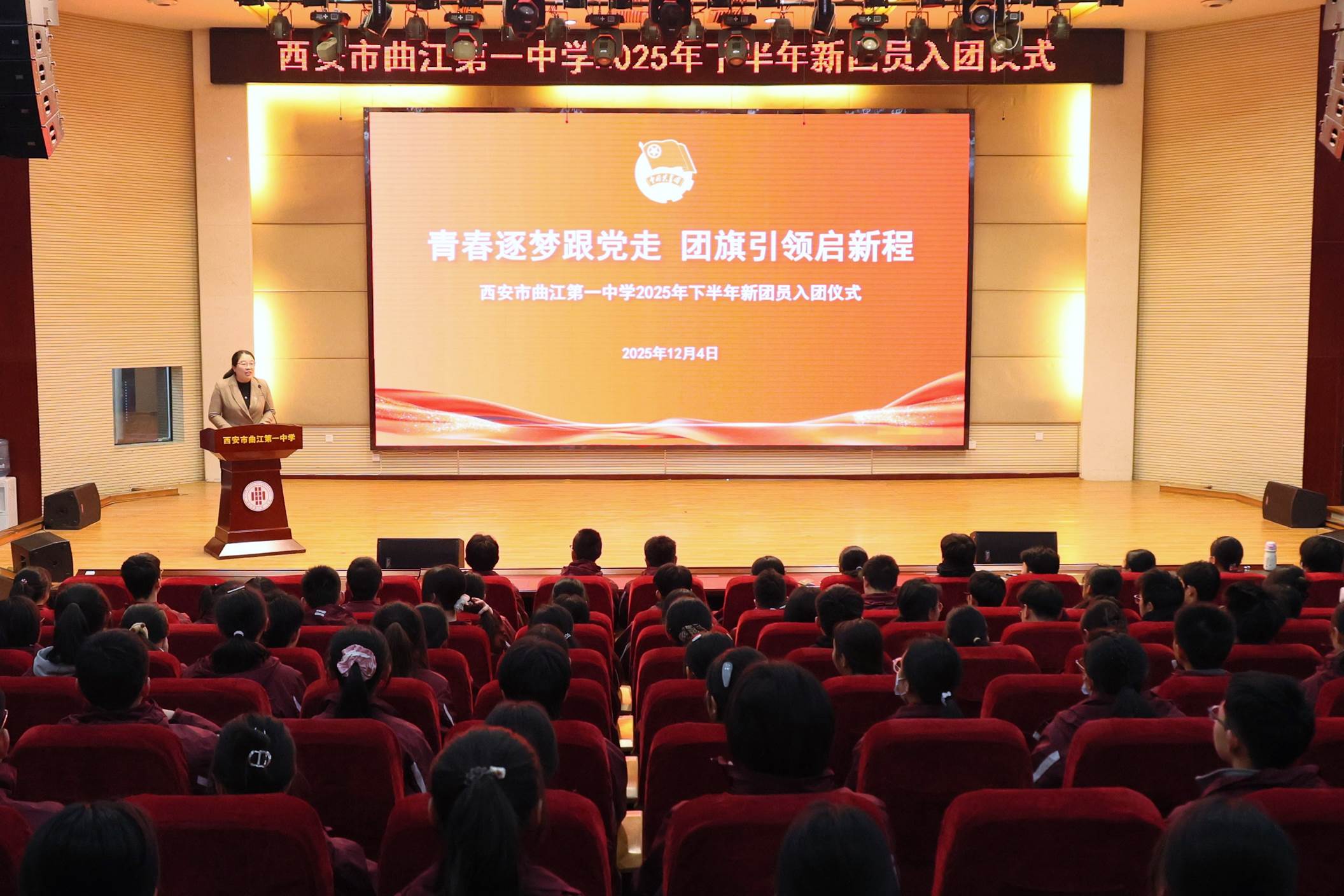 12月4日上午,西安市曲江第一中学举行“青春逐梦跟党走 团旗引领启新程”2025年下半年新团员入团仪式。校长陈勇刚及全体新团员参加仪式,仪式由校团委书记丁慧芸主持。