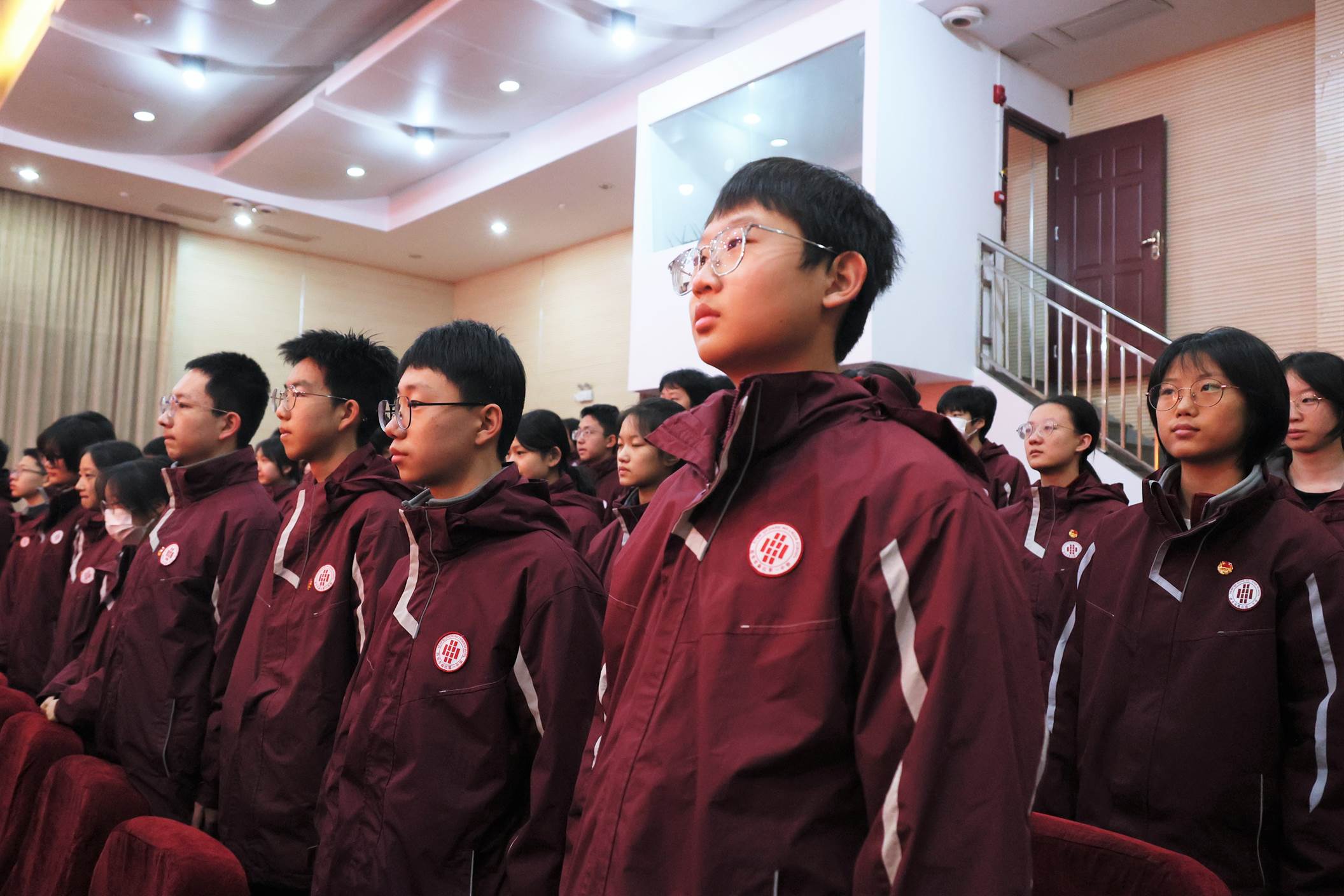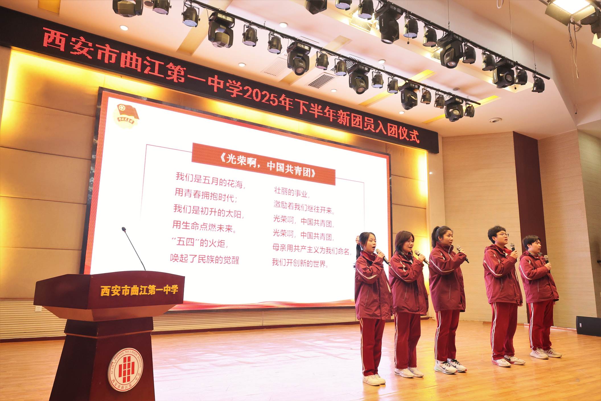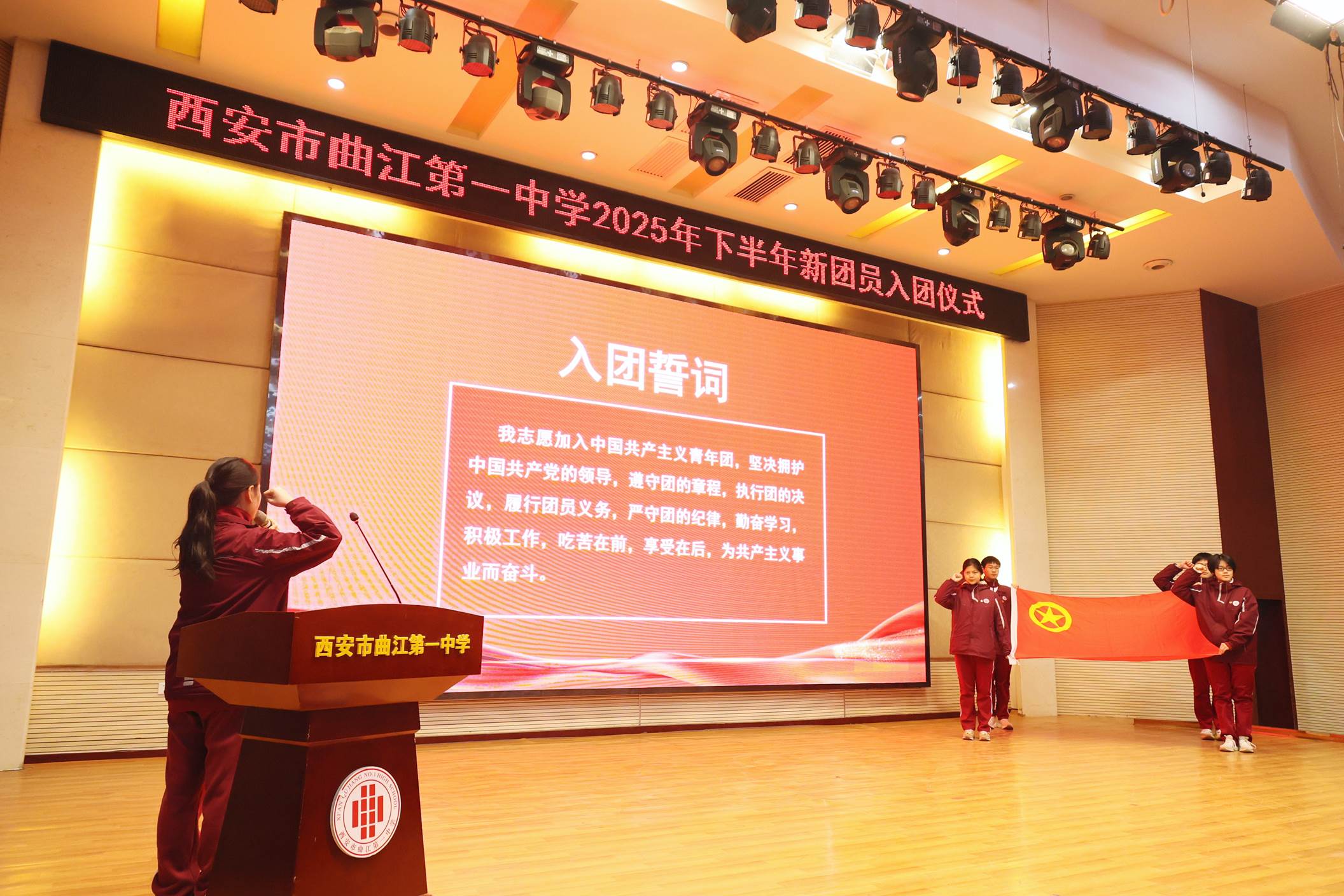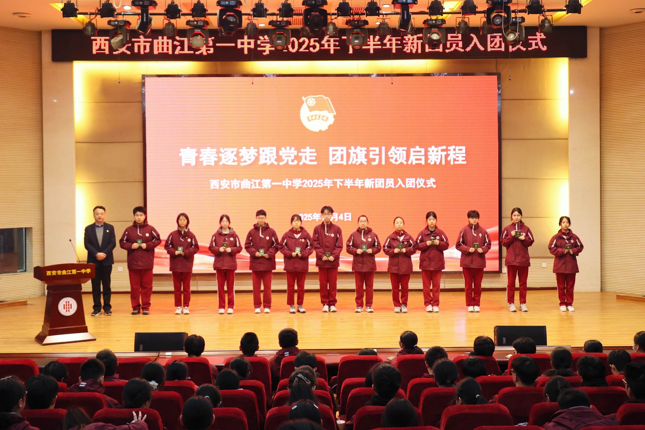12月4日上午,西安市曲江第一中学举行“青春逐梦跟党走 团旗引领启新程”2025年下半年新团员入团仪式。校长陈勇刚及全体新团员参加仪式,仪式由校团委书记丁慧芸主持。