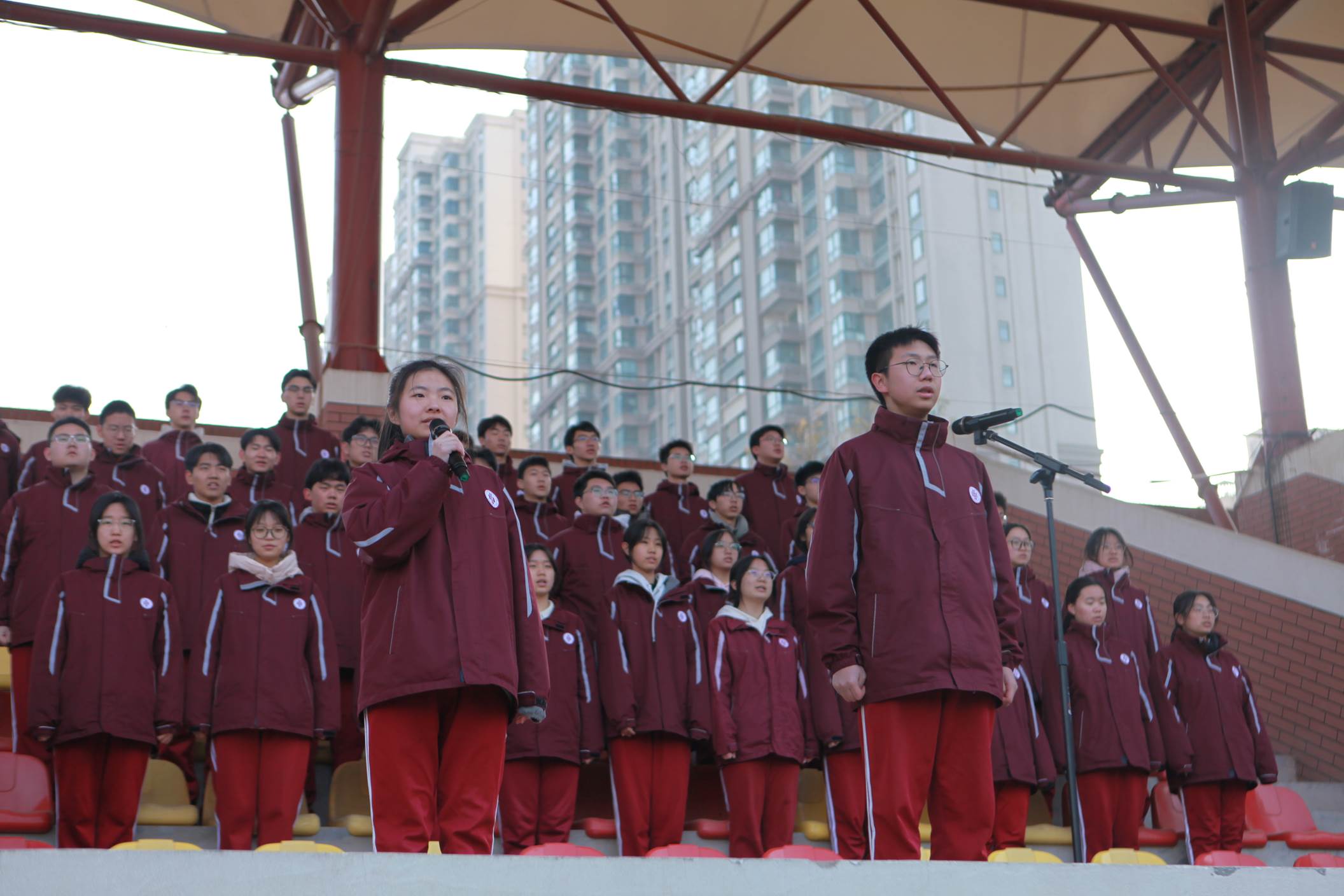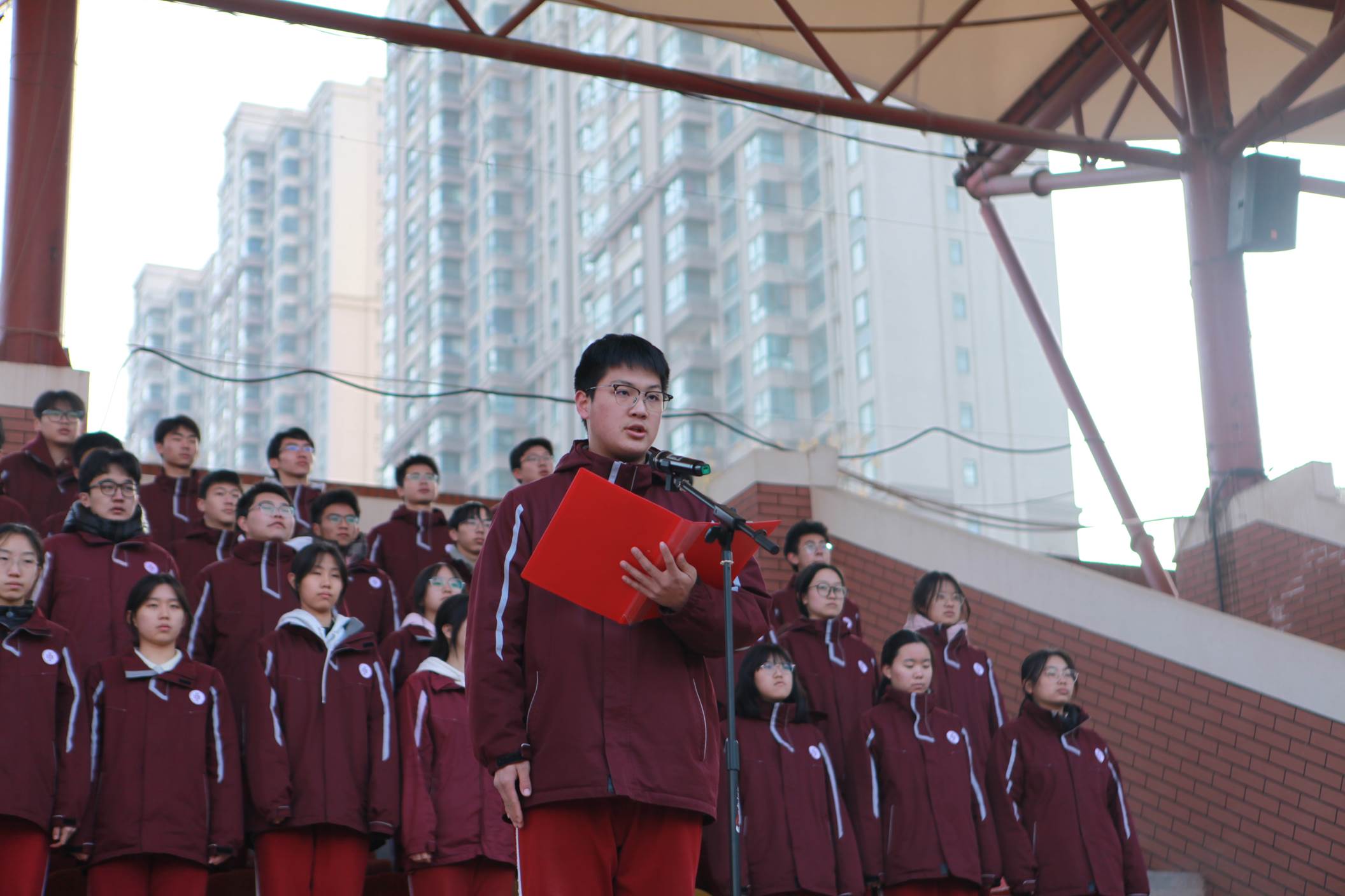 2026年1月5日上午,西安市曲江第一中学举行本学期第二十周升旗仪式,仪式由政教处副主任董锋主持。