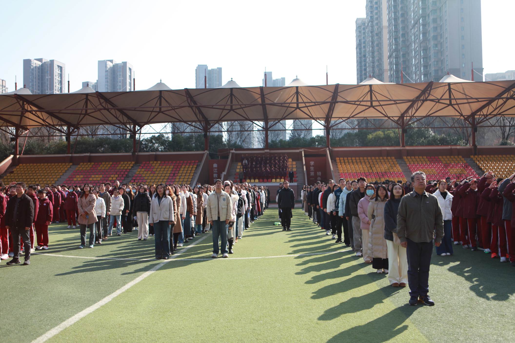 2026年3月9日上午,西安市曲江第一中学举行本学期第二周升旗仪式,仪式由政教处副主任董锋主持。
