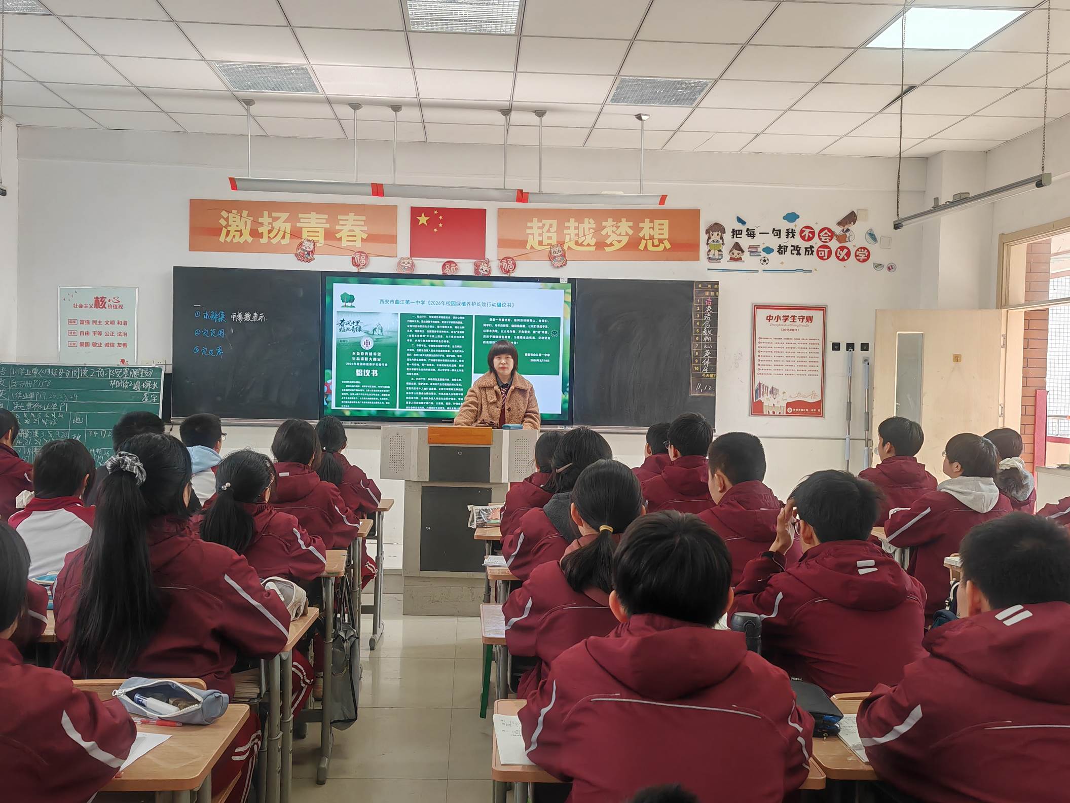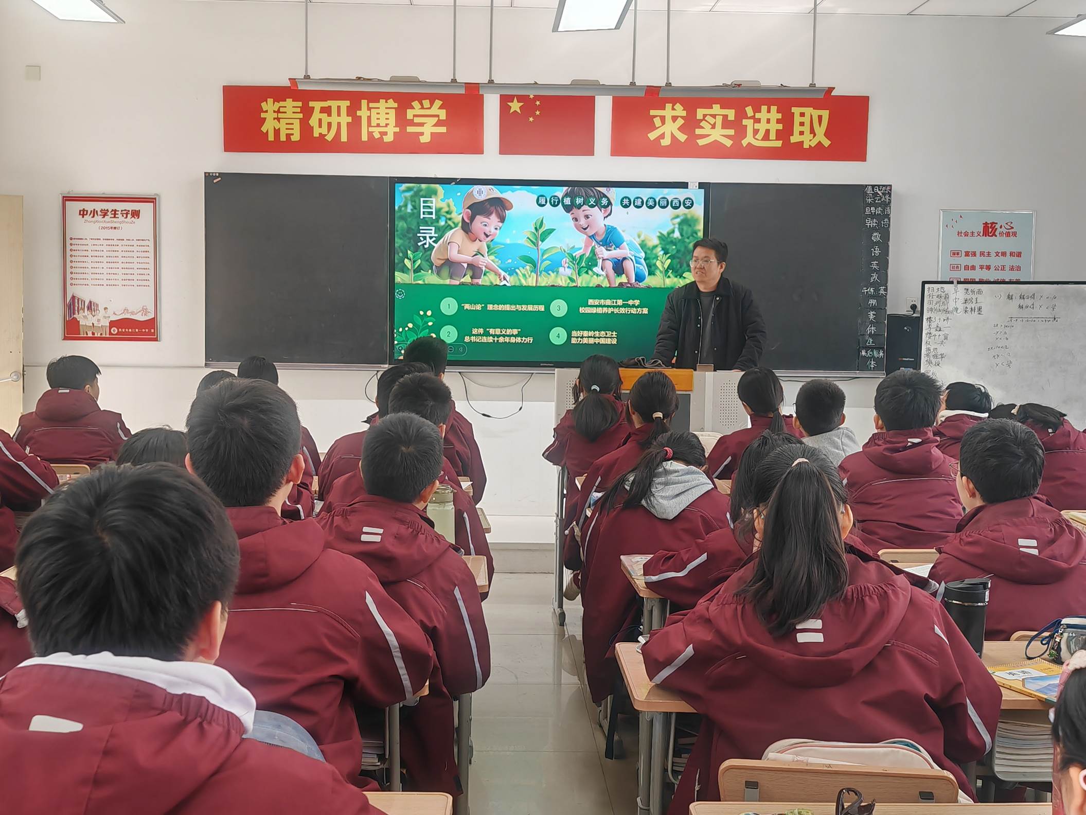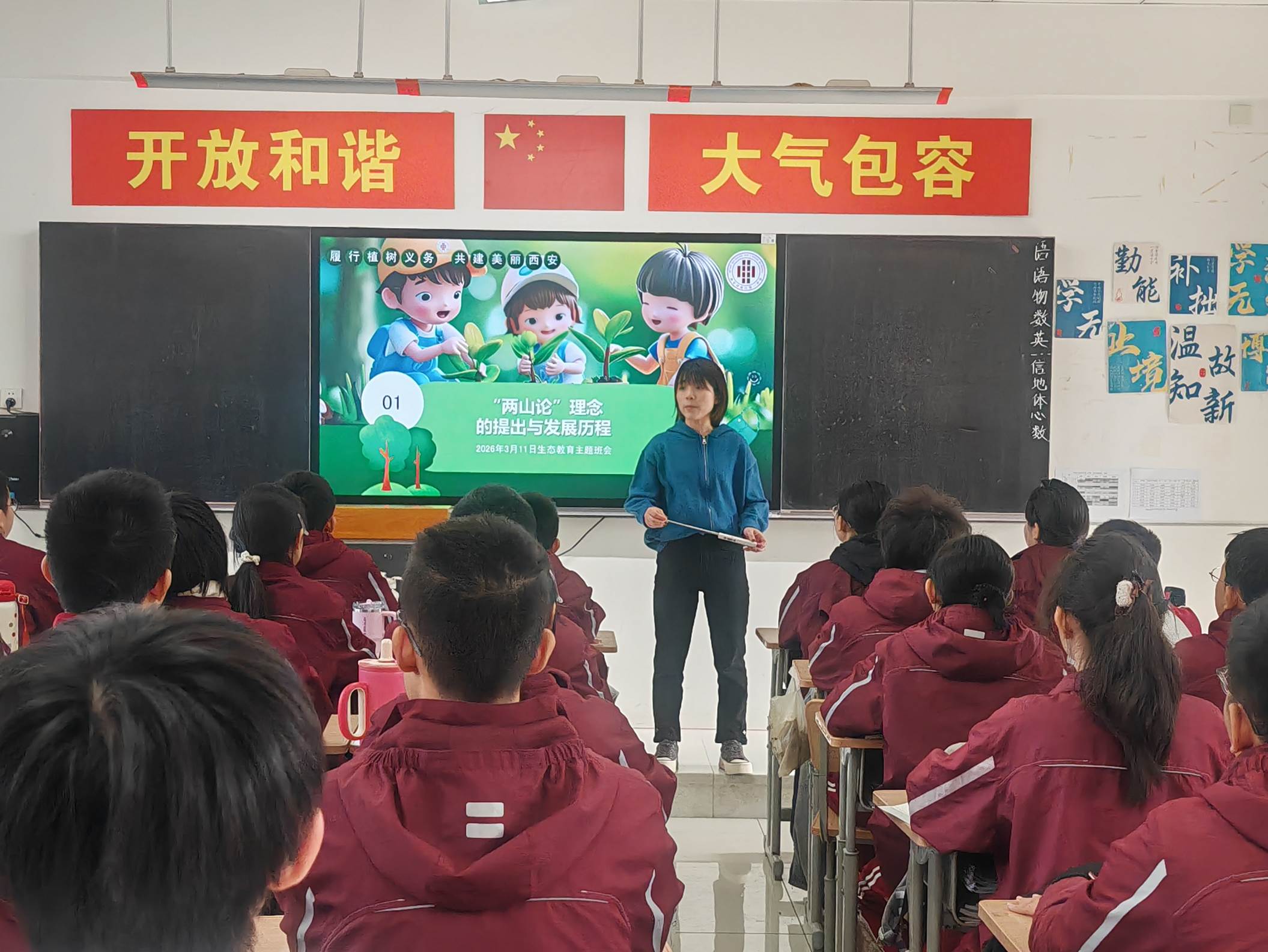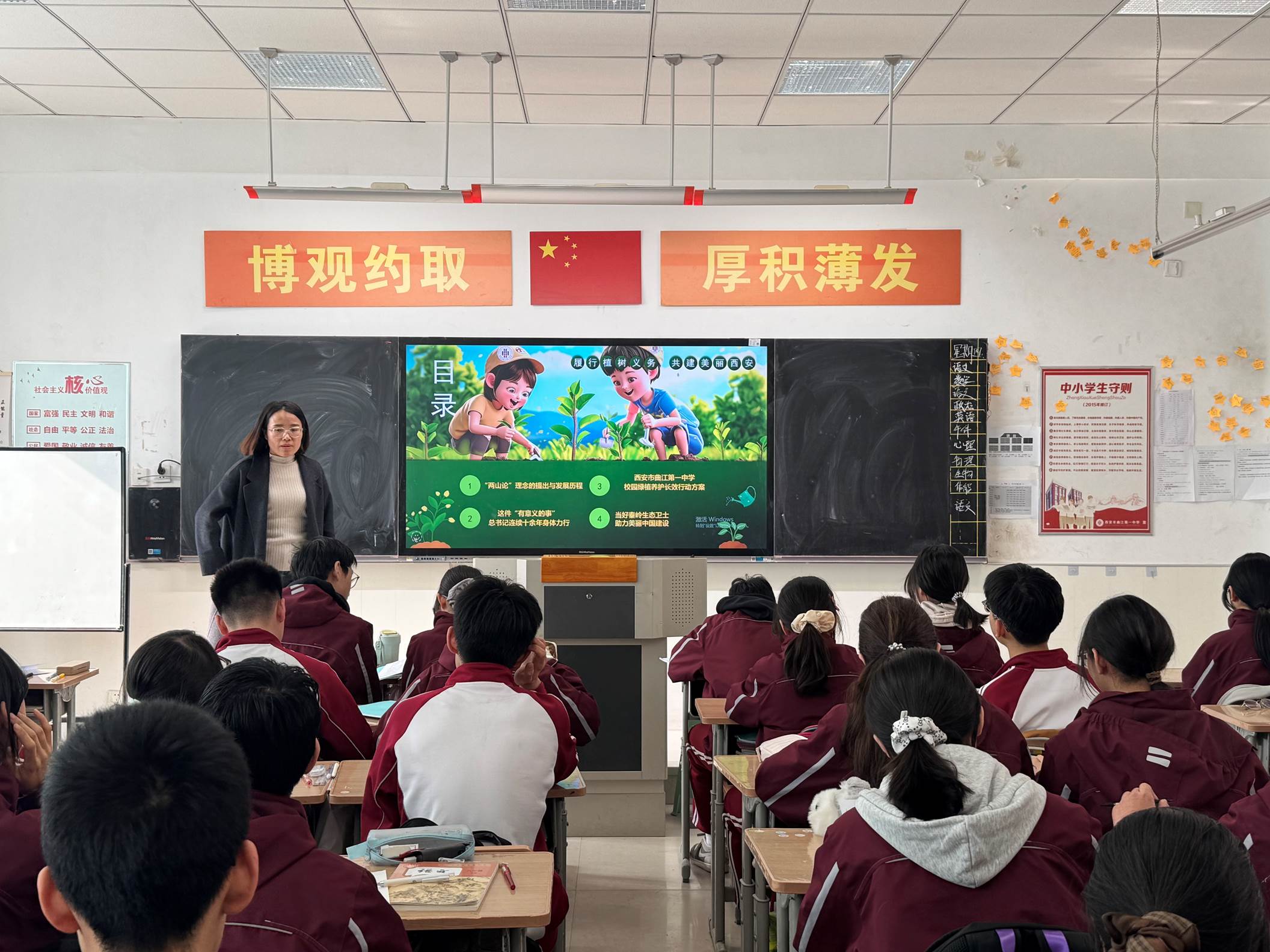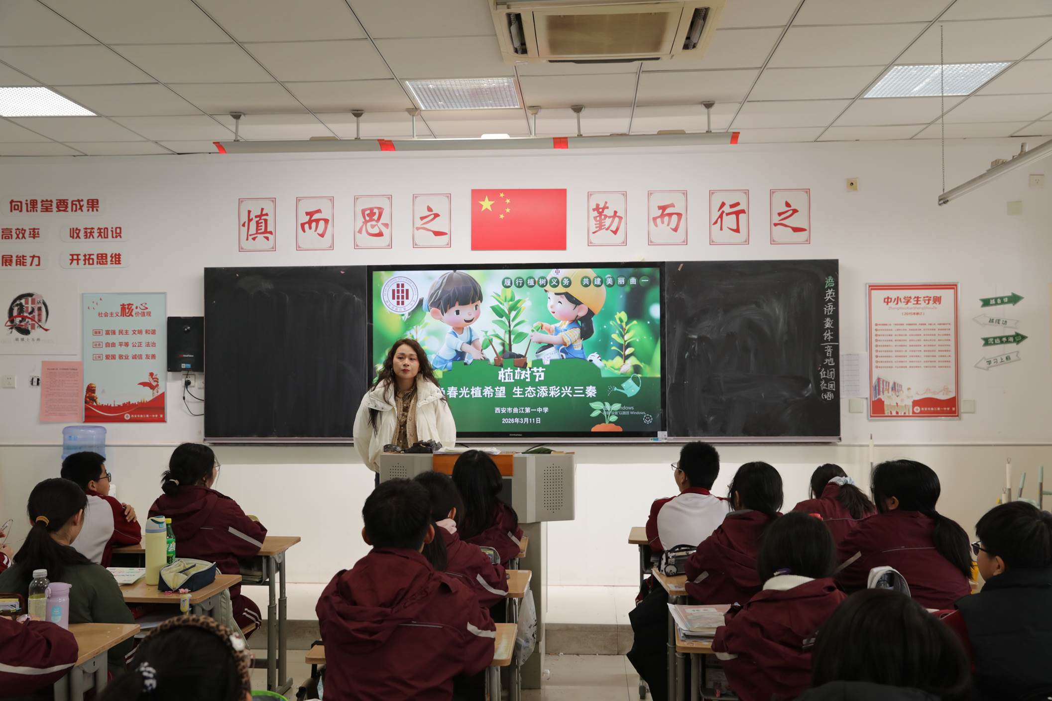 2026年3月11日,初2025级年级组召开“不负春光植希望 生态添彩兴三秦”主题班会,24个班级同频共振,同学们学习“两山论”理念的提出与发展历程,观看《这件“有意义的事”总书记连续十余年身体力行》视频。同学们以“履行植树义务,共建美丽中国”为主题,绘制班级名片,营造浓厚的植绿、护绿、爱绿氛围,为美丽西安添彩。