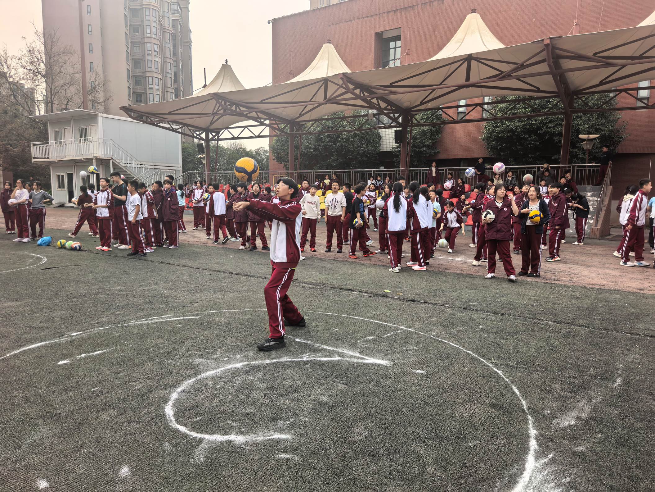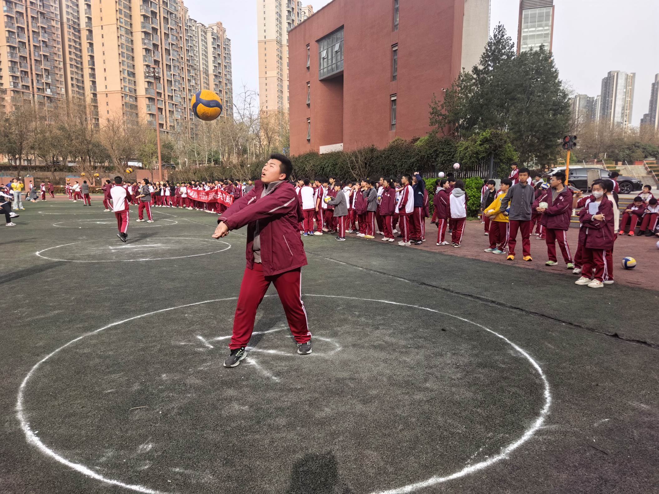 2026年3月27日下午,西安市曲江第一中学初2025级在西区操场,开展了精彩纷呈的排球原地自垫球比赛,深入贯彻“五育并举”,切实增强学生体质,丰富校园课余生活,提高学生的排球运动技能。