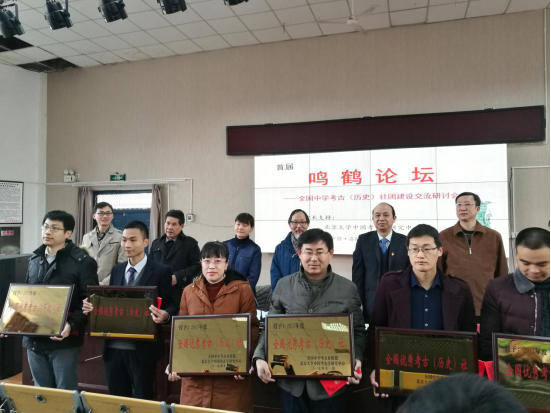 此次大会由来自北京、山东、安徽、江苏、河南、陕西、重庆、澳门特别行政区等12省市区37所中学参加,北京大学考古文博学院徐天进教授、刘庆华主任以及中国社科院乔玉研究员作为嘉宾出席。大会首先宣布获奖名单,我校珩瑆考古社团荣获首届全国中学师大优秀考古(历史)社、罗红梅老师荣获优秀辅导教师荣誉称号,随后各兄弟院校就本校社团开展情况做汇报交流,我校考古社团活动开展的形式、内容以及学生成果的展示都受到了与会专家和教师的一致好评。