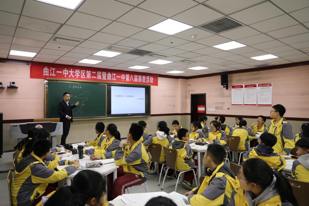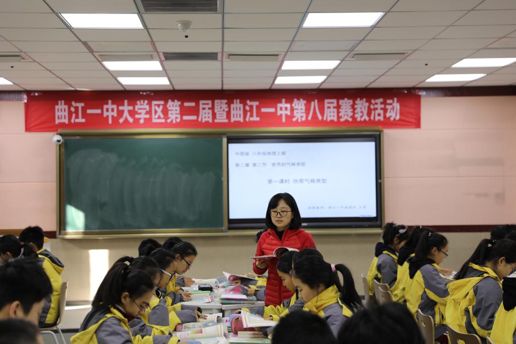 2017年12月18日,西安市曲江第一中学第八届赛教正式拉开了序幕。今年的赛教区别于往年就是在赛制的全新调整上。由过去的提前几天抽题准备到这次提前一个半小时抽题并准备,以往授课45分钟,课后进行说课反思,而此次调整为说课10分钟授课20分钟。这样的调整无疑对教师的业务水平要求极高,然而令人欣喜的初中文科组的老师们各个经得住如此高难度考验,使出了浑身解数,形成了百花齐放的局面。每一学科都有20个备选课题,四位语文老师抽到的课题分别是《使至塞上》《我三十万大军胜利南渡长江》《回忆我的母亲》及《美丽的颜色》,不同题材,不同切点进入文本,基本功扎实不扎实可谓彰显无遮。何丽梅、孟丽静、龚静三位英语老师准备认真,备课充分,课堂效果良好。政治老师马生宝《践行诚信》条理清晰、结合时政,引领学生建立正确的价值观;地理老师王莉思路清晰,语言凝练,基本功过硬,带领我们领略了热带四种不同的气候类型;美术老师席辉上课幽默风趣,把我们带入到了中国三位美术家的作品世界,进行了一场难得的美的教育。心理学张倩老师《沟通,架起心灵的桥梁》通过人与人之间最有效的交流方式“沟通”,来让人更好的交流;历史老师上官晶《近代民用工业的兴办及洋务运动评价》思路清晰,例证丰富,也是一种别样的收获。