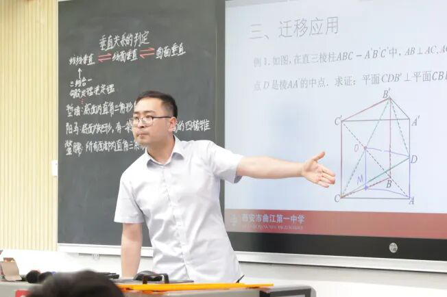 张重阳老师在《垂直关系的判定》教学中,以《九章算术》中的"堑堵""阳马""鳖臑"为情境导入,组织学生运用AI建模工具观察古代几何体结构。课堂通过分析"阳马""鳖臑"的几何特征,展开垂直关系判定的探究活动,学生通过独立思考与小组讨论理解空间垂直的转化规律。教学过程中,张老师借助AI系统实时分析学生作答的思路、步骤,有效提升了教学的针对性和有效性。整堂课以古书中的经典几何体作为明线,以垂直关系的判定作为暗线,帮助学生将抽象的理论知识具象化,加深对概念和定理的理解。