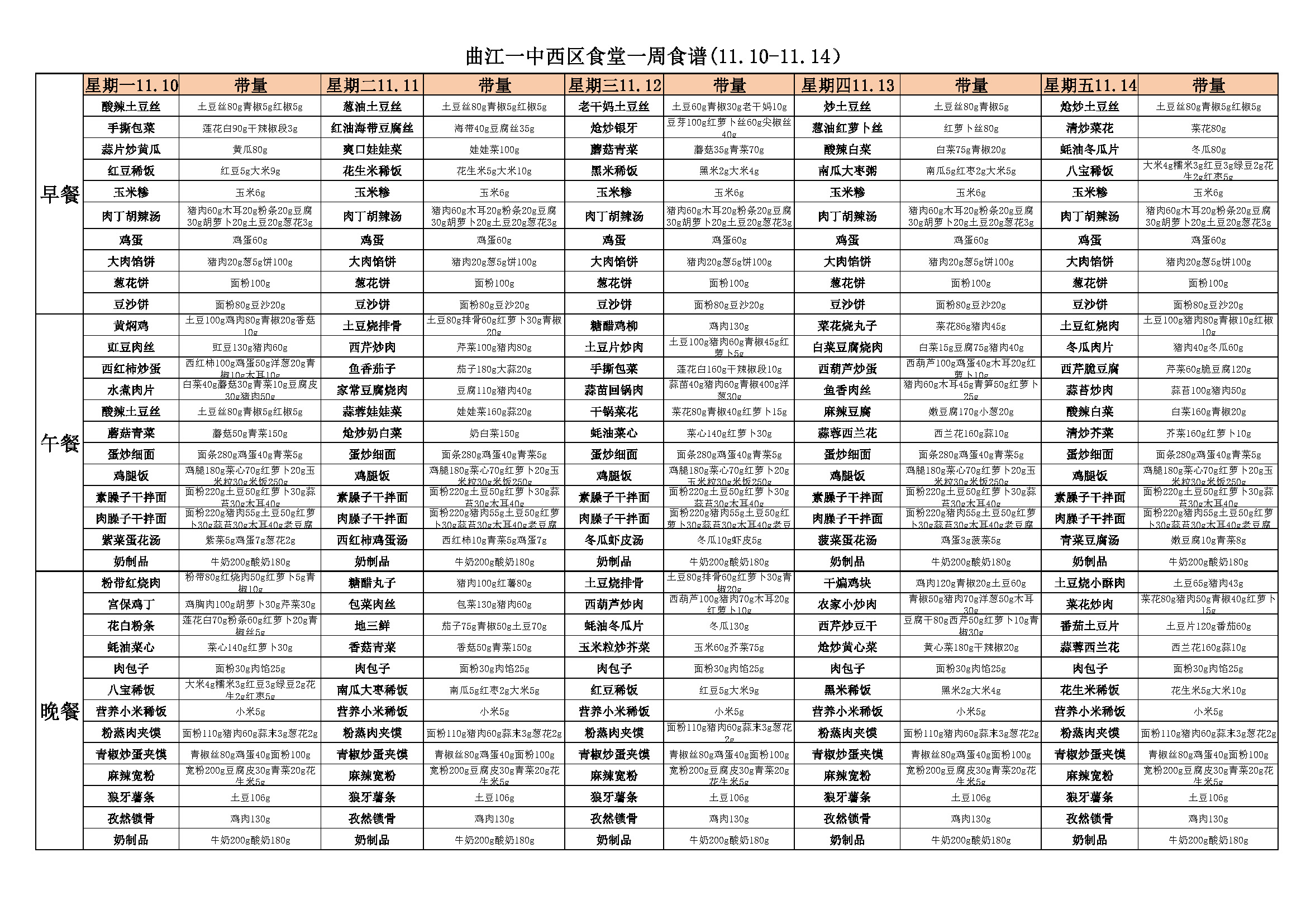 曲江一中食堂一周带量食谱(11.10-11.14)