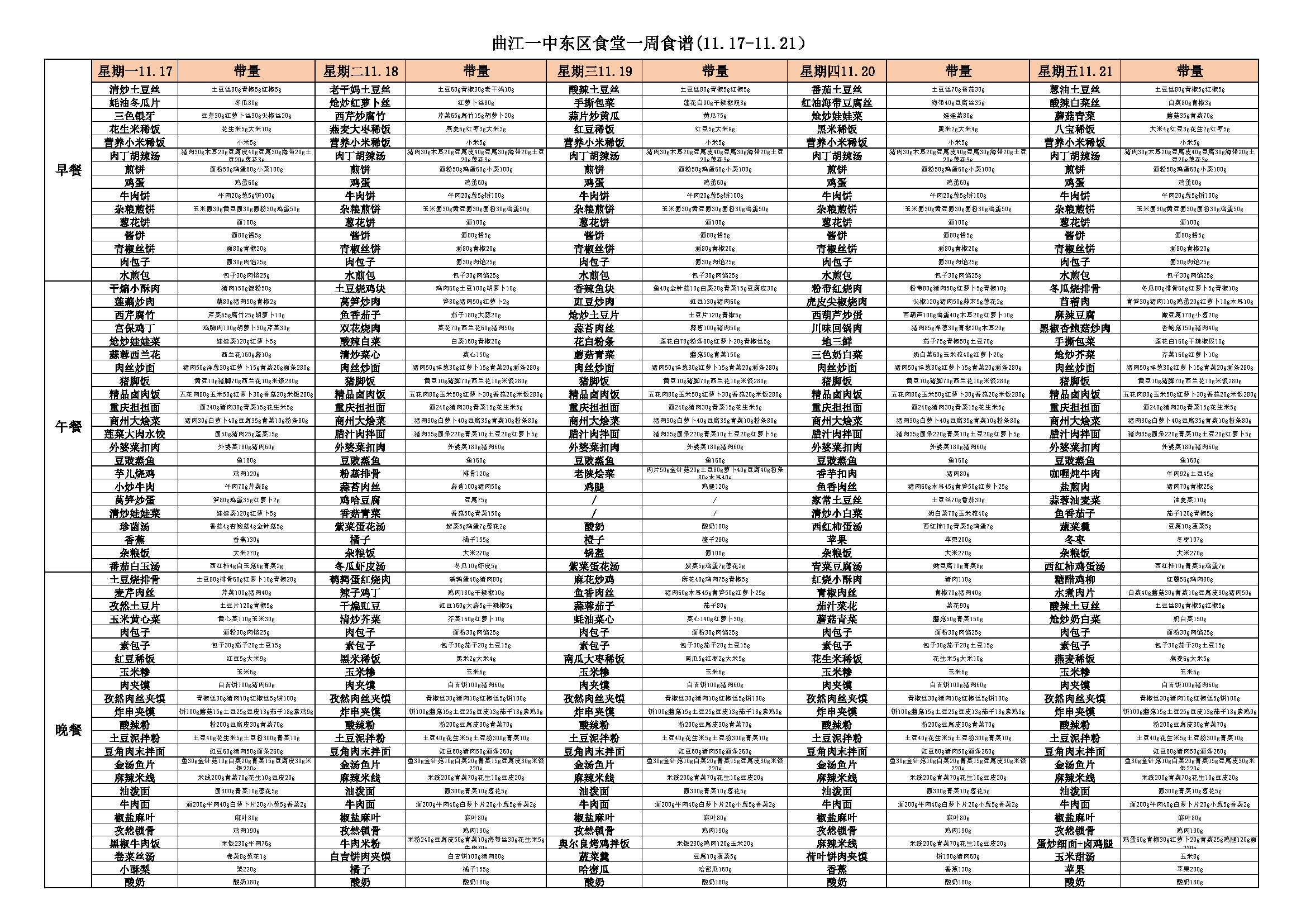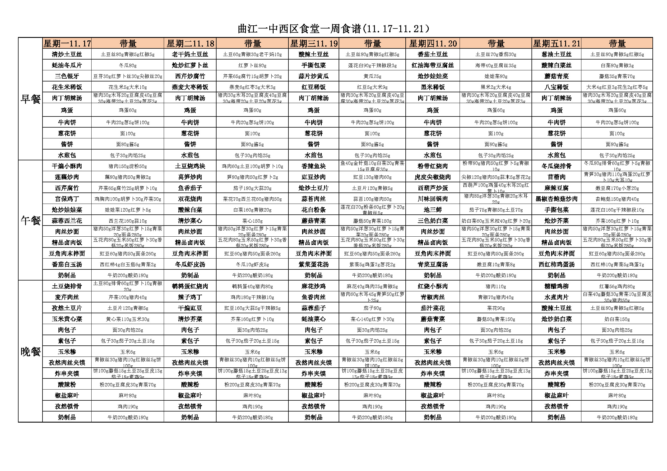 曲江一中食堂一周带量食谱(11.17-11.21)