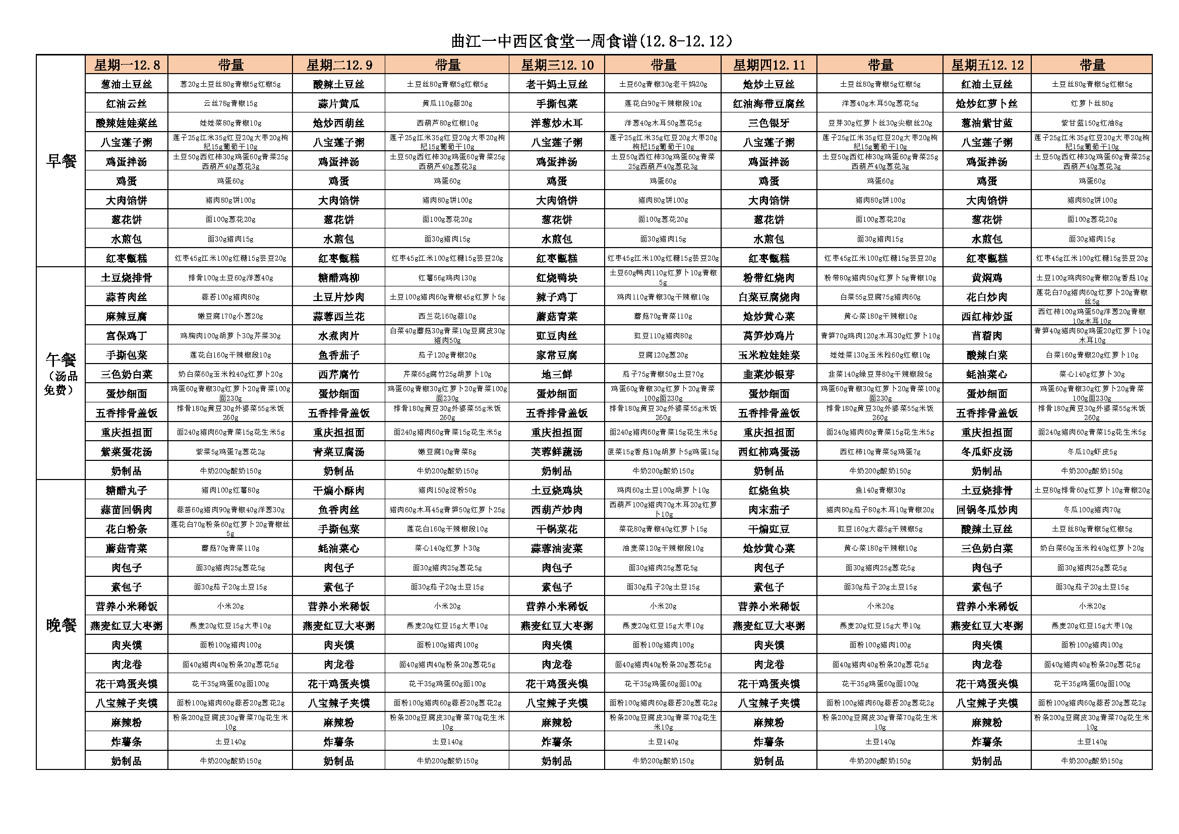 曲江一中食堂一周带量食谱(12.8-12.12)