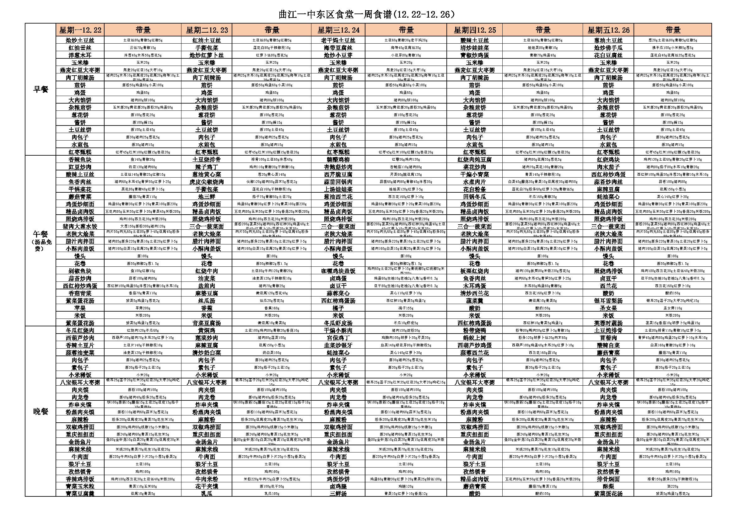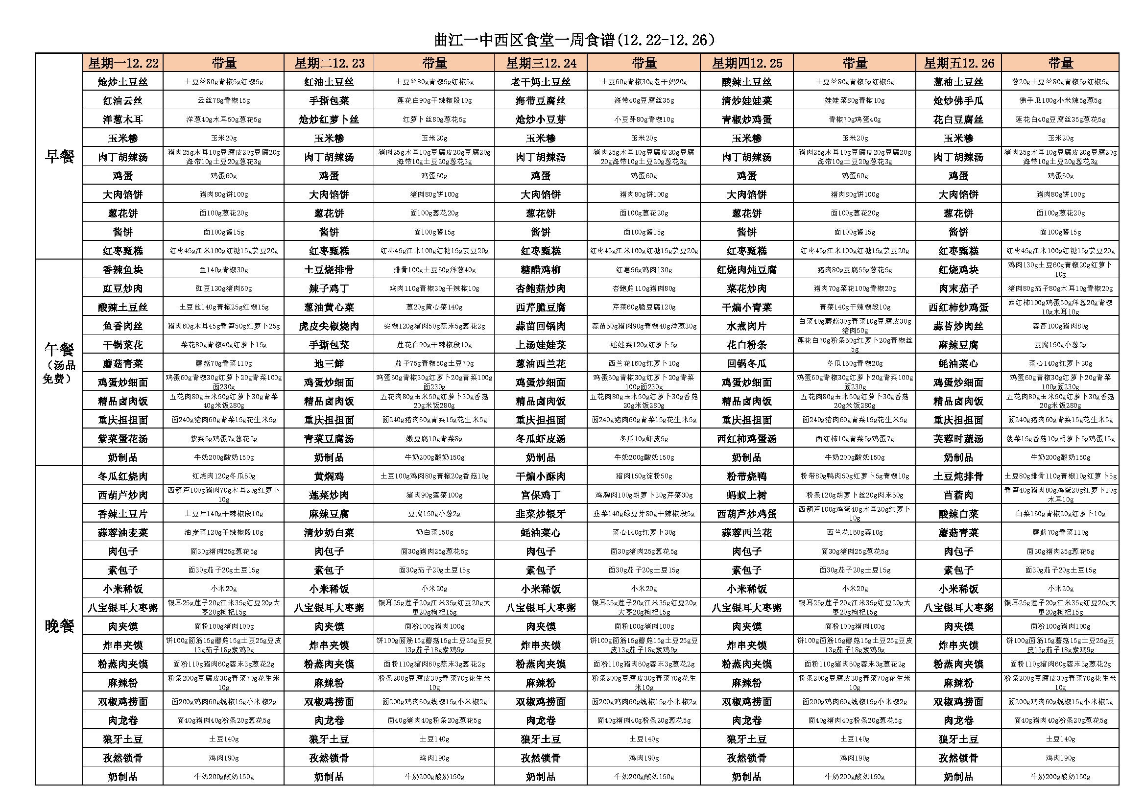 曲江一中食堂一周带量食谱(12.22-12.26)