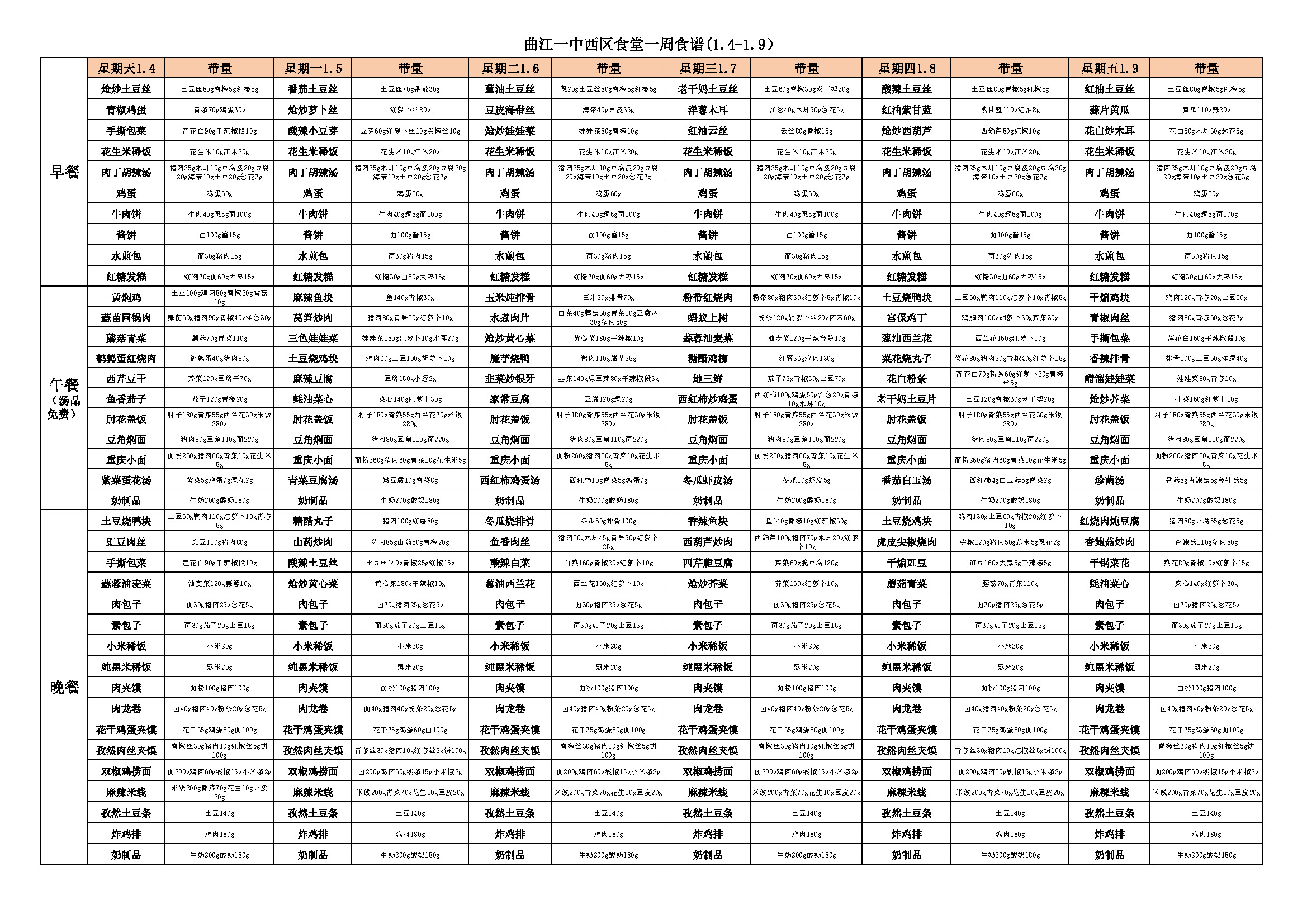 曲江一中食堂一周带量食谱(1.4-1.9)