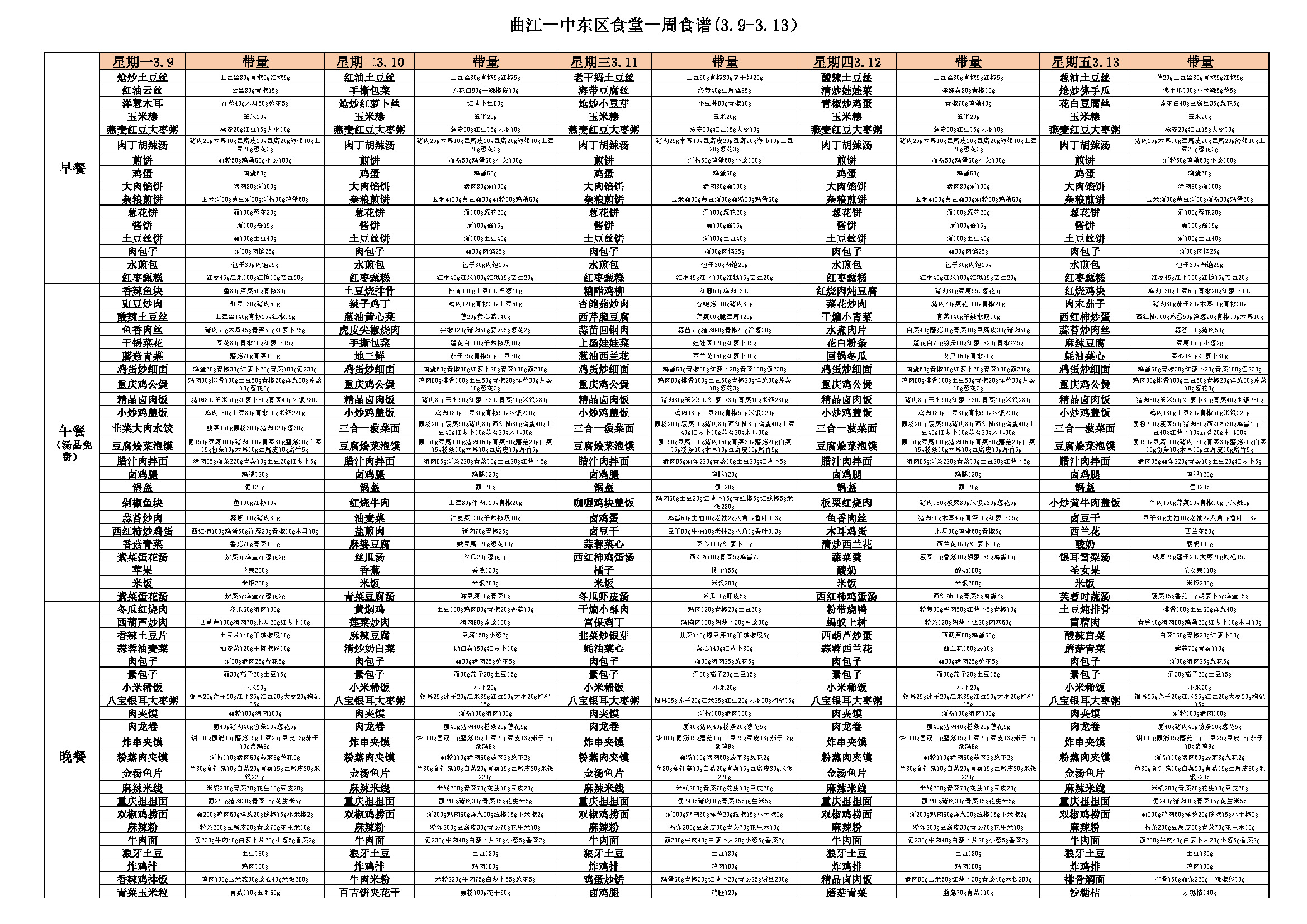 曲江一中食堂一周带量食谱(3.9-3.13)