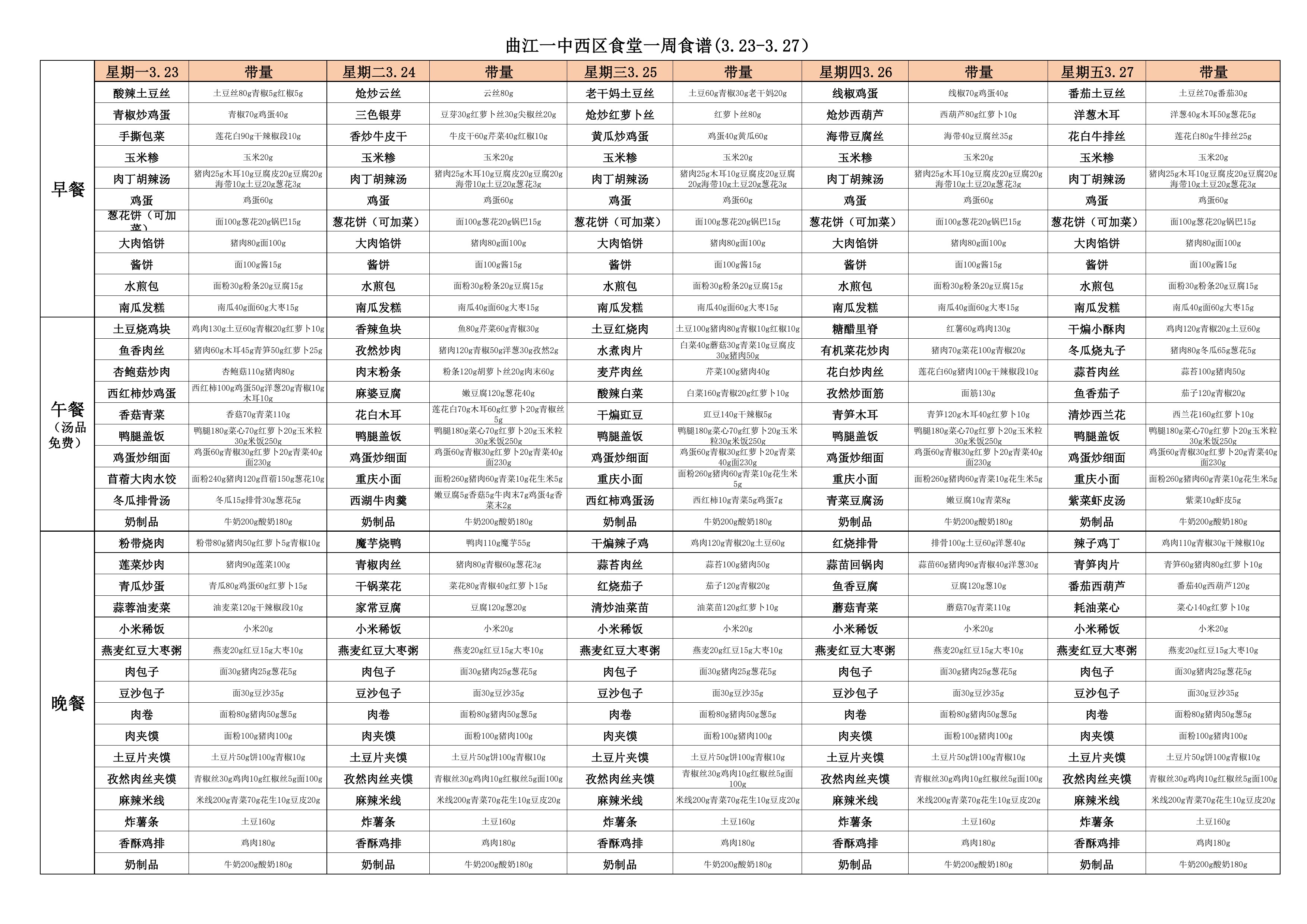 曲江一中食堂一周带量食谱(3.23-3.27)