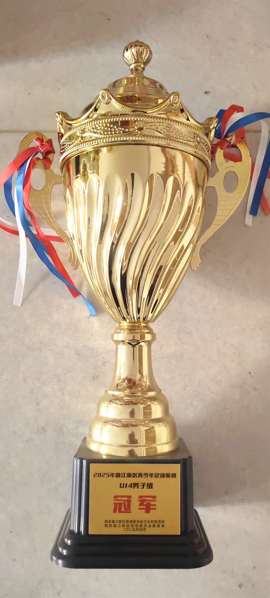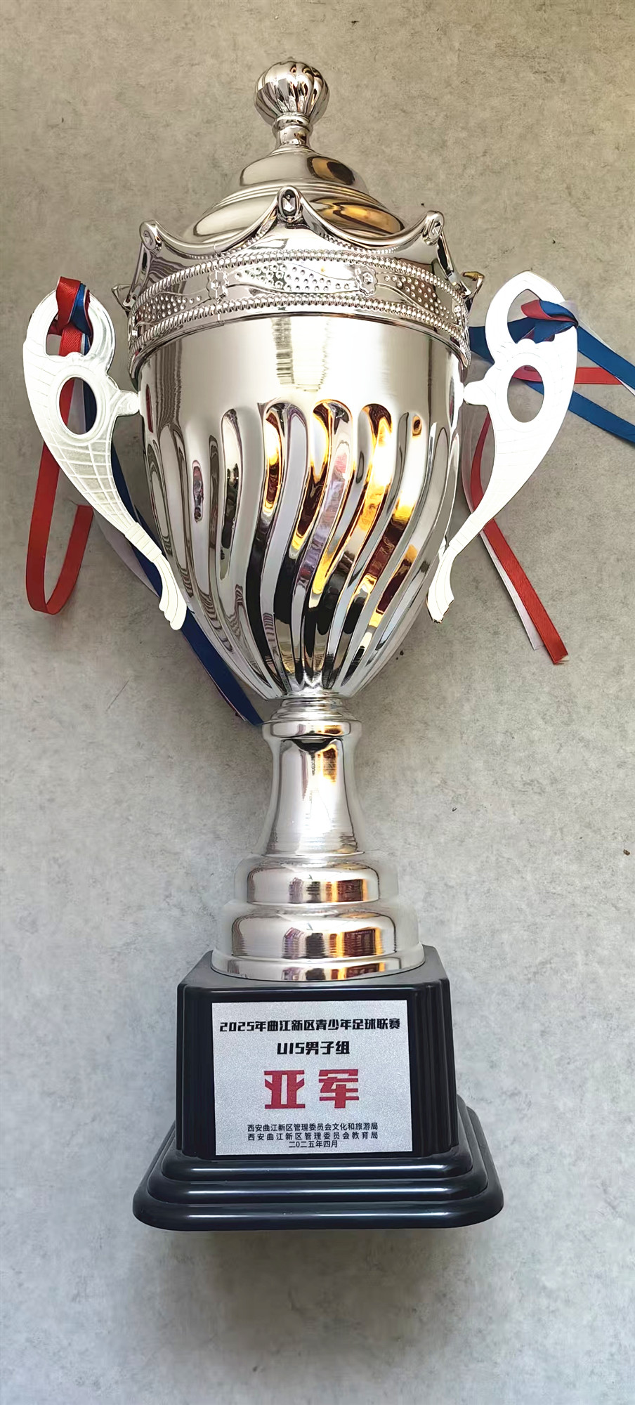 2025年5月,西安市曲江第一中学荣获2025年曲江新区青少年足球联赛u14男子组第一名、u15男子组第二名