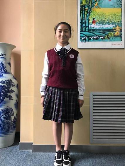 学生正装:白色衬衫、宫墙红色毛背心、卡其色长裤(男生)、格子裙裤(女生)。