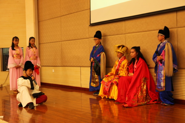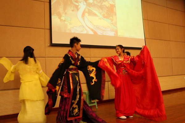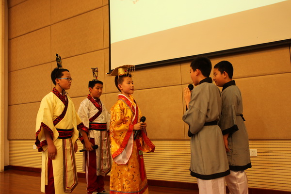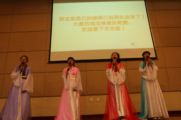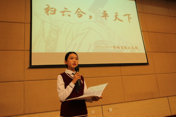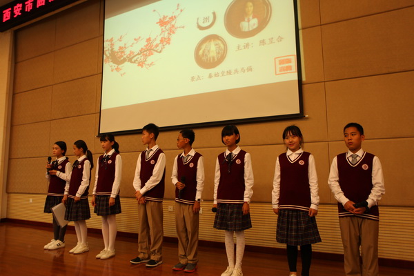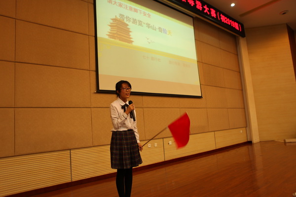 每个班的参赛选手们紧张而兴奋,早早在后台候场。在一阵阵热烈的掌声中,1-5号团队的选手惟妙惟肖地完成了表演,台下的欢呼声也是从未停止。中场的有奖知识竞答环节,台下的同学们一个个都积极举手,甚至连主持人读题的时间也等不及,未读完题目,便已高举双手。同学们的热情,再多奖品也无法将其磨灭。很快,下半场的5个团队又依次上台展示出陕西之风、自身之采,一个个难忘的故事、一支支动人的舞蹈、一首首铭心的歌曲、还有一段段生动的讲解,将陕西那些历经沧桑的文物古迹和众多鬼斧神工的自然景观勾勒在我们眼前。台上生动形象地表演、台下全神贯注地欣赏。时间飞逝,又到了有奖知识竞答环节,同学们的激情未减半分,热情洋溢着整个报告厅。最后,同学们的手抄报作品微视频将大赛再次推向高潮,大家一起听着《带着梦想去旅行》,欣赏着同学们精心制作的手抄报,感受着老师对我们的期望……