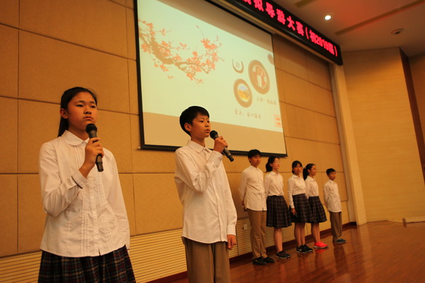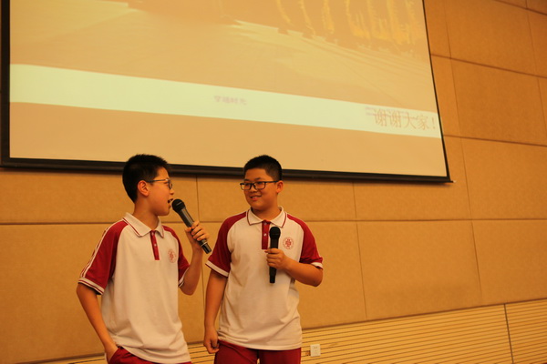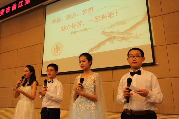 伴随着熟悉的旋律,全体同学在老师的指导下有序进场就座。四位主持人个个精神饱满、盛装上台,介绍了本次大赛的规则和评委老师。本次大赛共有10支代表队参加,每队在规定时间内完成团队介绍、导游讲解及才艺展示三部分内容。出席本次大赛的评委老师有校办兼政教处主任余爱东老师、初一年级组组长金凤玉老师、地理教研组组长杨光辉老师、语文教师赵倩老师和地理教师梁丽老师。