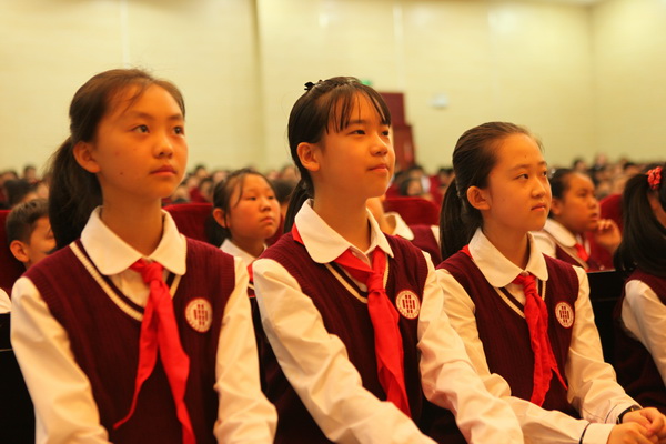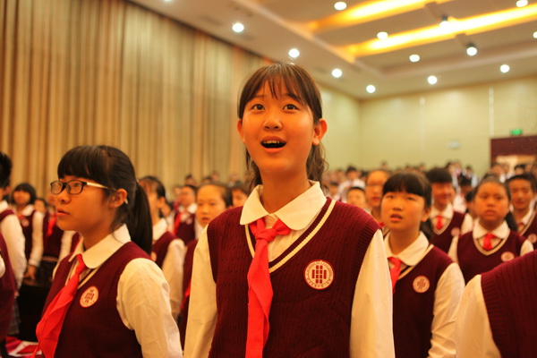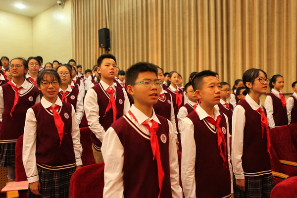 常务副校长陈勇刚、政教处主任余爱东、政教处副主任团委书记刘瑜和同学们一起度过了这个“青春”的节日。当国旗冉冉升起,全体少先队员用标准的队礼诠释了对于祖国的热爱;同学们一起演唱少先队队歌,享受美好童年。