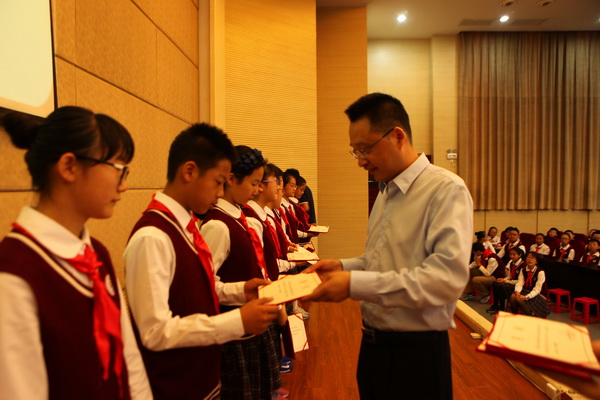 常务副校长陈勇刚为“优秀少先队员”颁发证书