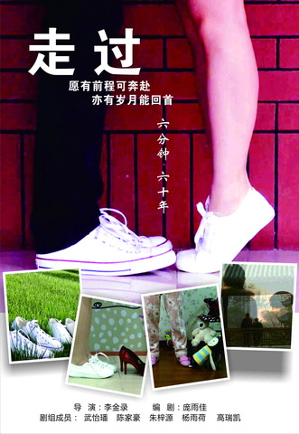 从2017年2月讨论剧本开始,3月拍摄、4月剪辑,小组的7名成员一直都沉浸在艺术创作的兴奋、激情和争辩之中。导演李金录坚持把整部戏分为五幕来表达不同年龄段场景,并撰写详细的分镜头脚本,奠定了本片成功的基石;编剧庞雨佳力荐仅通过拍摄腿和脚下半部分的移动来表达“走过”这一主题,实为本片的亮点;负责音乐的陈家豪找了十几首歌曲来配合不同的场景和心情,为影片增色不少;摄影师武怡璠,认真请教前辈,从零学起,一招一式有模有样;剪辑工作由认真踏实的朱梓源负责,删减留存,游刃有余;还有负责道具、场记、后期海报制作、宣传工作的杨雨荷、高瑞凯立足幕后,恪尽职守。所有剧组的工作人员兼任演员,零表演基础的我们如何仅用腿部、脚部镜头反映人物性格、刻画人物内心、推动情节发展,也是让整个团队绞尽脑汁,时不时要来场头脑风暴。或许影片还略显稚嫩,细节之处还有待推敲,但团结、敬业、认真的我们在成就梦想的同时也成就了我们自己,这些青葱岁月成长的印记都将永驻心间,历久弥新。