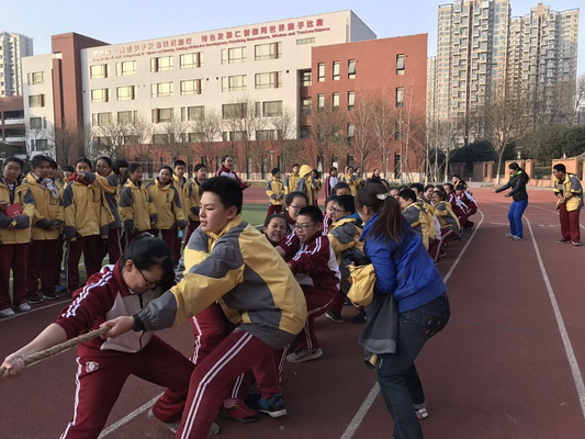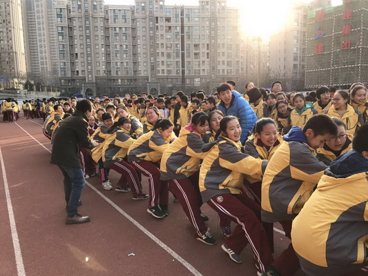 赛场上的队员个个斗志昂扬,用他们的汗水为我们讲述了团结的含义,他们顽强的毅力与拼搏的精神让每一个人感动。啦啦队员个个热情高涨,这里不乏老师们竭尽全力的助威,每一声呐喊都带来一股力量!在最后两局的激烈角逐中,班主任也和学生一起加入了拔河比赛中,整个操场随之沸腾了起来,为寒冷的冬日带来了热情与活力。