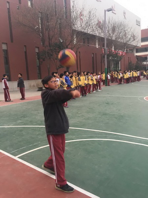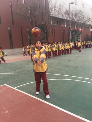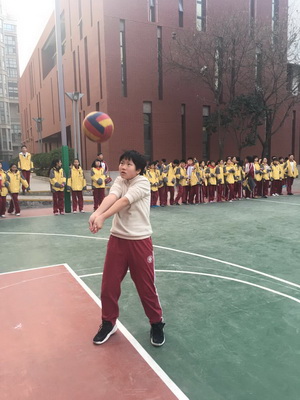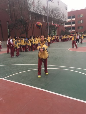 赛前,体育组全体教师悉心指导、规范动作、强调要领,各班同学从零基础到每分钟逐个增加,越发熟练,兴致勃勃。可训练的过程对娇嫩的初一同学们来说确实充满困难。有时,一节课下来,很多女生的胳膊都垫得通红刺痛,叫苦不迭。