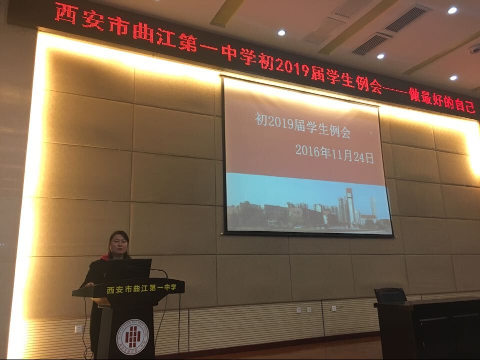 2016年11月24日下午4点50分,新初一年级召开了“做 最 好 的 自 己”年级例会,会议在年级组长金凤玉老师的主持下进行。4点40分,七年级五百名同学从班级整队统一带入会场。