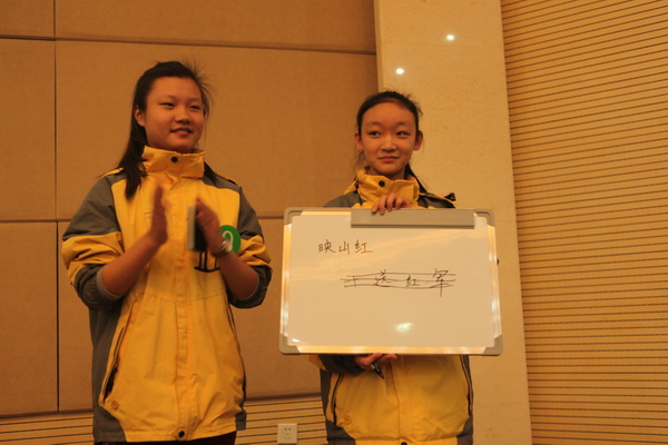 本次比赛共有“红军不怕远征难”、“四渡赤水出奇兵”、“三军过后尽开颜”三个环节。在比赛第一环节,60名同学精神抖擞地站成一个方阵,手举手势牌进行答题,一道道难题在同学们面前迎刃而解;第二环节“四渡赤水出奇兵”,描述的同学想尽各种办法解释题目,竞猜的同学很快便能心领神会,默契的配合时不时引来观众的热烈掌声;第三环节“三军过后尽开颜”,一首首经典歌曲的重现仿佛把观众又带回到了那个战火纷飞的年代,让同学们更充分的感受到老一辈革命家为了中华民族独立顽强拼搏、奋斗的大无畏精神。最后全场同学们竞猜歌曲将此次活动推向了高潮。