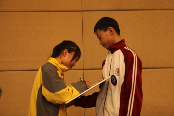 学校办公室兼政教处主任余爱东、初2018届年级组组长张洁观摩本次竞赛