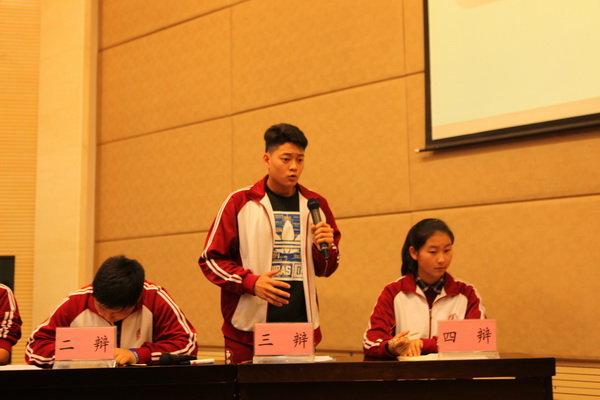 辩论赛很快拉开了帷幕。开场的自我介绍便已是硝烟弥漫,比赛正式打响后更是刀光剑影、如火如荼。只见正方一辩谷梁慧子同学率先立论,从容不迫侃侃而谈,清晰的表述和严谨的逻辑征服了赛场的评委和观众。反方一辩何致远同学也不甘示弱,条理清楚的论述己方观点。攻辩环节中两方队员都当仁不让,你来我往之间是激情与智慧的碰撞。最为精彩的是自由辩论环节,只见对阵双方你方唱罢我登场,论点阐述流利连贯,气势汹汹斗志昂扬,将赛场气氛推向最高潮。最终的总结陈词时间,双方四辩再度补充巩固己方论点,同时也对对方的漏洞进行最后一击。 经评委老师的公正裁决,第一场辩论赛正方更胜一筹,赢得了比赛的胜利。