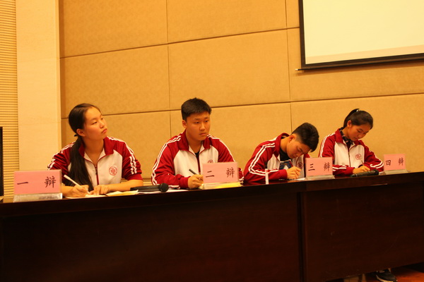 语文教师郭晓敏、邹劼、赵倩担任本次辩论赛评委