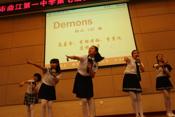 在这次比赛中我们看到了同学们的创造力和才艺是无穷尽的。请记住这个精彩的时刻,必将成为我们青春纪念册中浓墨重彩的一笔!同时也祝愿曲江一中的英语风采大赛越办越精彩!