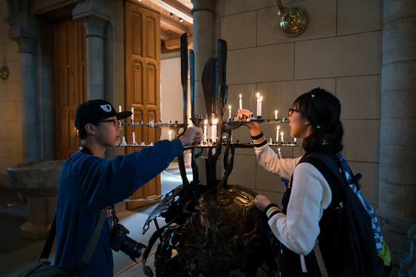 在乌普萨拉,那座高入云天的红色哥特式教堂,我找到了答案。那时我已穿过中央穹顶,准备离开这里。突然看见一位老人,身披庄重的衣衫,神色肃穆,推开厚重的门进来,左顾右盼似在寻找些什么。忽的,他的眼神变得惊喜,接着,他快步走入祈祷间,他在基督画面前停下了脚步。好奇地我在他之后停下。只见他竟缓缓的朝圣像画中被钉在十字架上的基督跪下,平举双臂,双手向上作祈祷状,口中呢喃着我听不懂的句子。他开始祈祷,我看不到他的眼睛,但我想,此刻,他的心灵,藉由他的眼睛,他的嘴唇,他的目光,他的向上的手,他用力伸展的手臂,与上帝相拥。阳光自教堂的五颜六色的窗上洒下,照耀在他身上,仿佛给老人镀了一层似虚无又似有形的金边,充满了仪式般的庄严感和肃穆感,这里没有正厅的金碧辉煌,没有画厅的高贵华丽,这里只有一个祈祷者,我却觉得这里充满了从古老年代传承的来强大的信仰的力量,这有他一人而无教堂。有如上帝亲临此地,向正信者散播他的救赎之光。梵音忽起,将这位老人和我包围,我觉得他不高的身影又好像拔高了几分,出尘而飘逸。管风琴声减退,我也结束了这次简短的观察,悄悄地退出去。此刻钟声响起,响彻这片土地,我看见三三两两的人走入教堂,夕阳将他们拉长,也在这宏伟的教堂留下壮丽的一瞥,无声而更显庄重。我突然觉得我找到了答案。