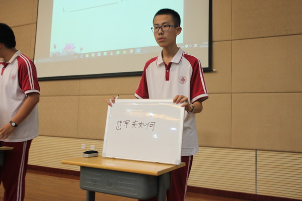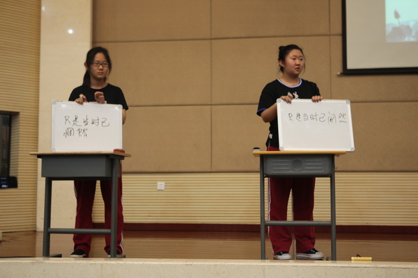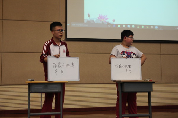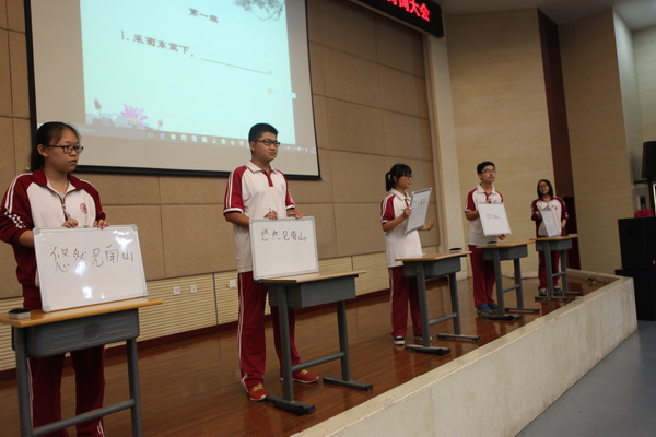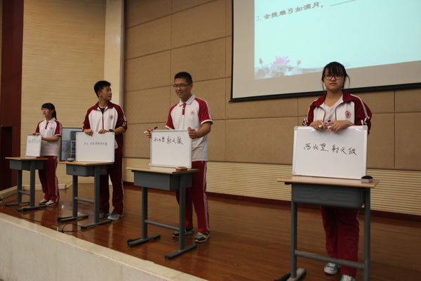本次比赛由苏岳老师主持,分为四个环节,共有六个班参赛。在简单介绍比赛规则之后,各班同学都跃跃欲试,迫不及待地开始了第一轮比赛的角逐。