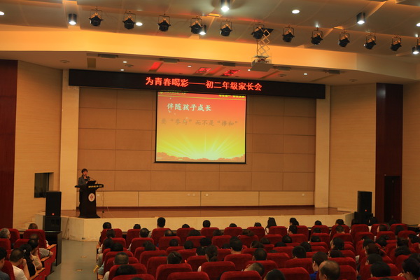 在家长会上,陈老师围绕“如何面对青春期的孩子”这一主题与家长朋友们进行了深入探讨。陈老师指出,面对青春期的孩子,家长要“放松”而不是“放纵”;伴随孩子成长,要“参与”而不是“掺和”;面对选定的目标,要务实而不是“尝试”。陈老师真诚而中肯的建议得到了在座家长的阵阵掌声。随后,家长们纷纷进入了孩子们所在的班级,参加各班举办的家长会。会上,各班班主任首先与家长们分享了半学期以来孩子们在校的学习生活,肯定其成长与进步;同时针对初二阶段孩子们身上所存在的问题,给家长们提供了一些行之有效的解决方法。之后各班任课老师进班与家长们进行了沟通交流,旨在让家长了解孩子各科的学习情况。